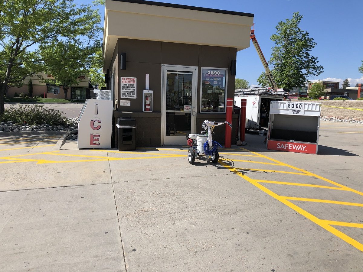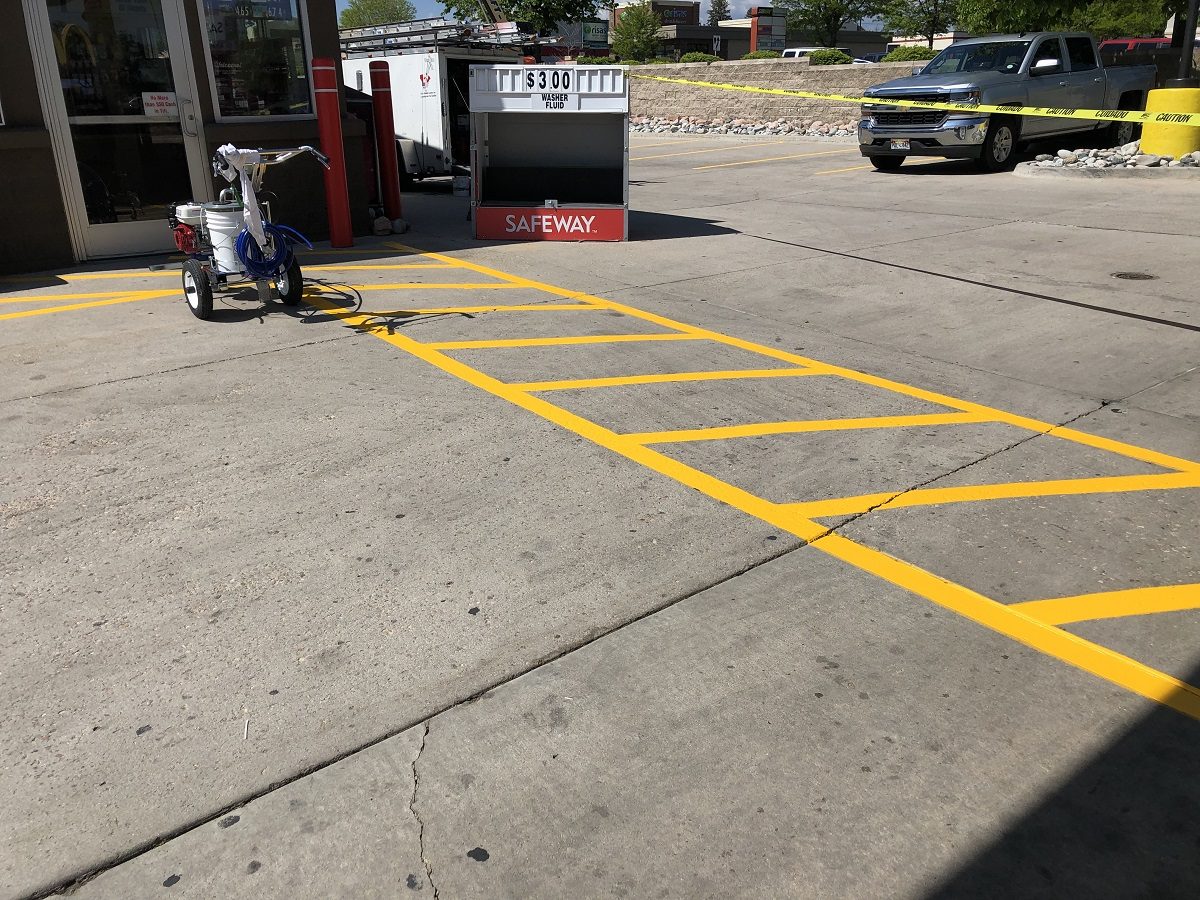 Here is an example of a line striping project. This Safeway parking lot needed their parking spaces and non-parking areas re-striped for better visibility. We take this same professionalism to every commercial project that we do. Give us a call today!