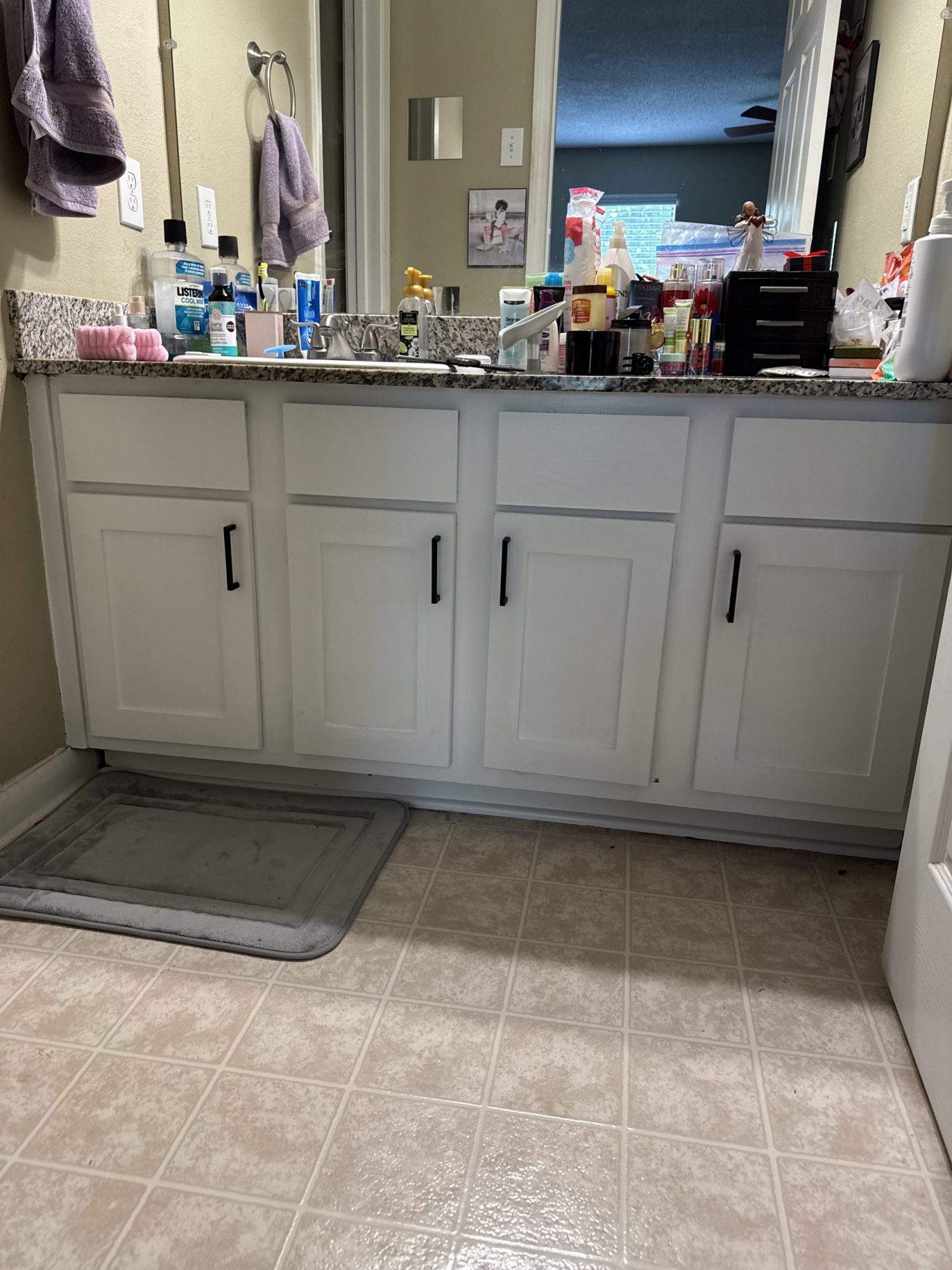 In addition to painting, the team removed over 30 sets of aging cabinets per unit, replacing them with brand-new installations. Each new cabinet and drawer required precise measuring, hardware installation, and custom modification to integrate properly with tongue-and-groove rail systems—ensuring functionality as well as visual appeal.