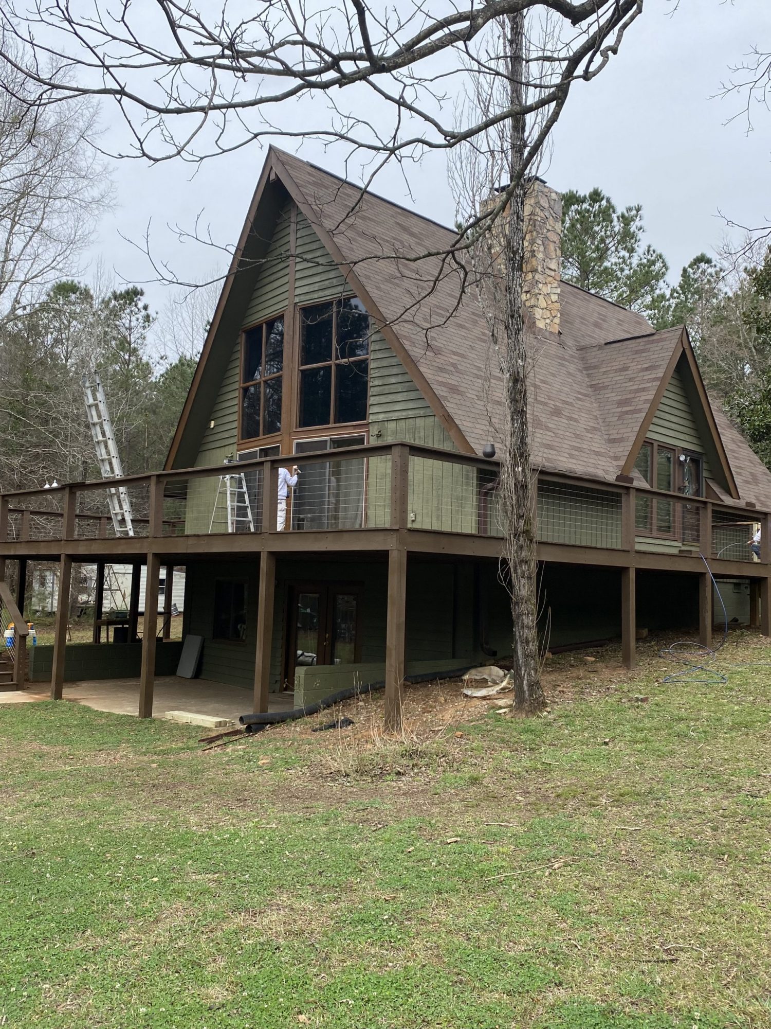 CertaPro Painters® of Columbus, GA and Auburn, AL turned this aged brown building into a rustic green masterpiece!