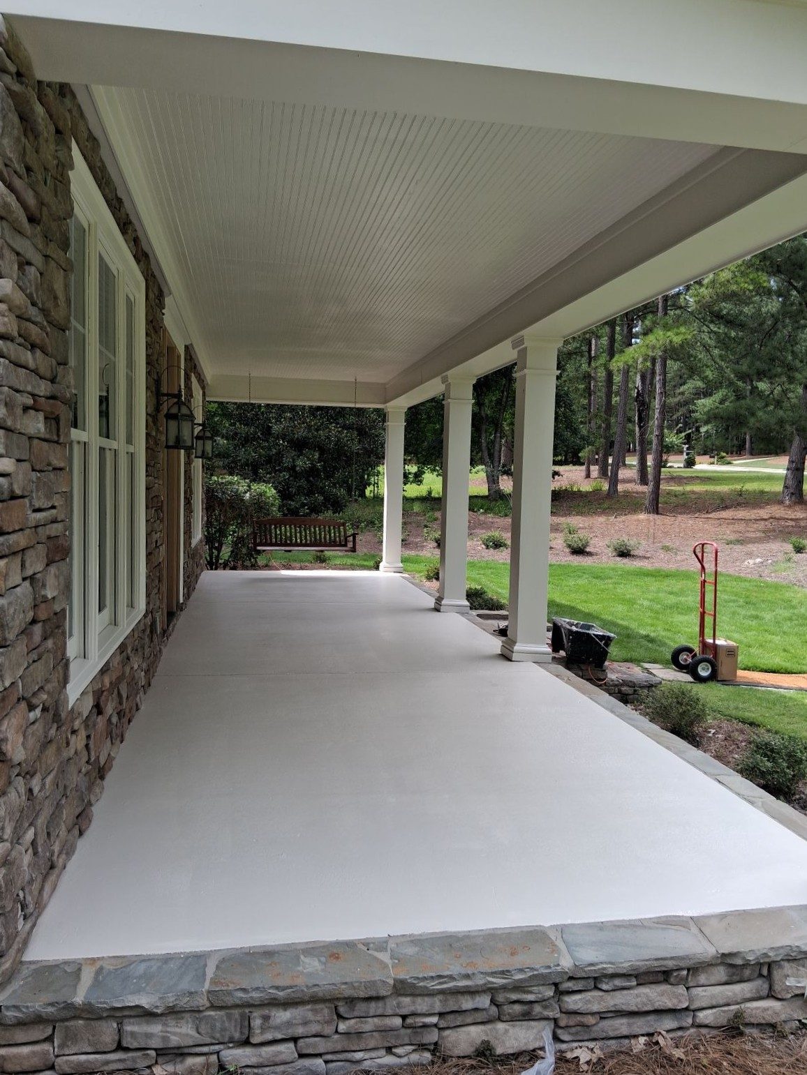 CertaPro Painters® of Columbus, GA and Auburn, AL transformed the front and rear porches of this home from a fading beige to a vibrant and modern gray color.