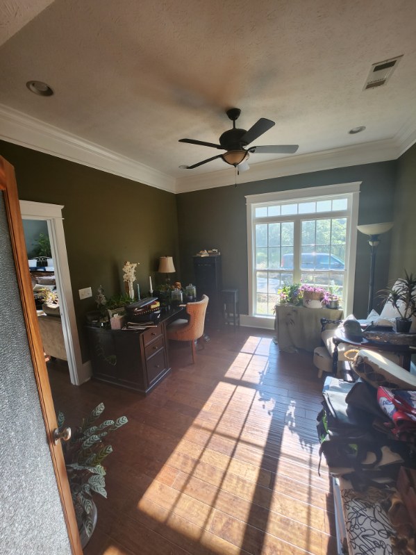 The experts at CertaPro Painters® of Columbus, GA, and Auburn, AL, remade the interior of this Ellersie, GA, home. The project included caulking and priming baseboards and crown molding before the interior was repainted.