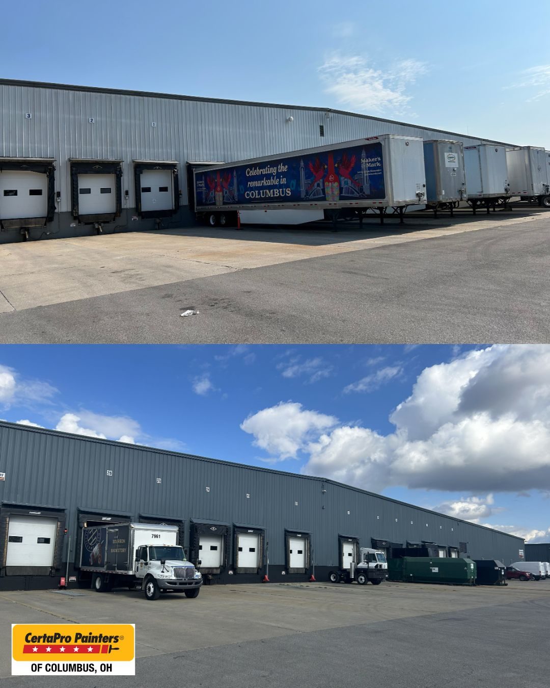 In Summer 2025, CertaPro Painters® of Columbus, OH completed a three-week exterior restoration project for Southern Glazer’s facility in Whitehall, Ohio, which included two large industrial warehouse buildings and the interior courtyard between them.