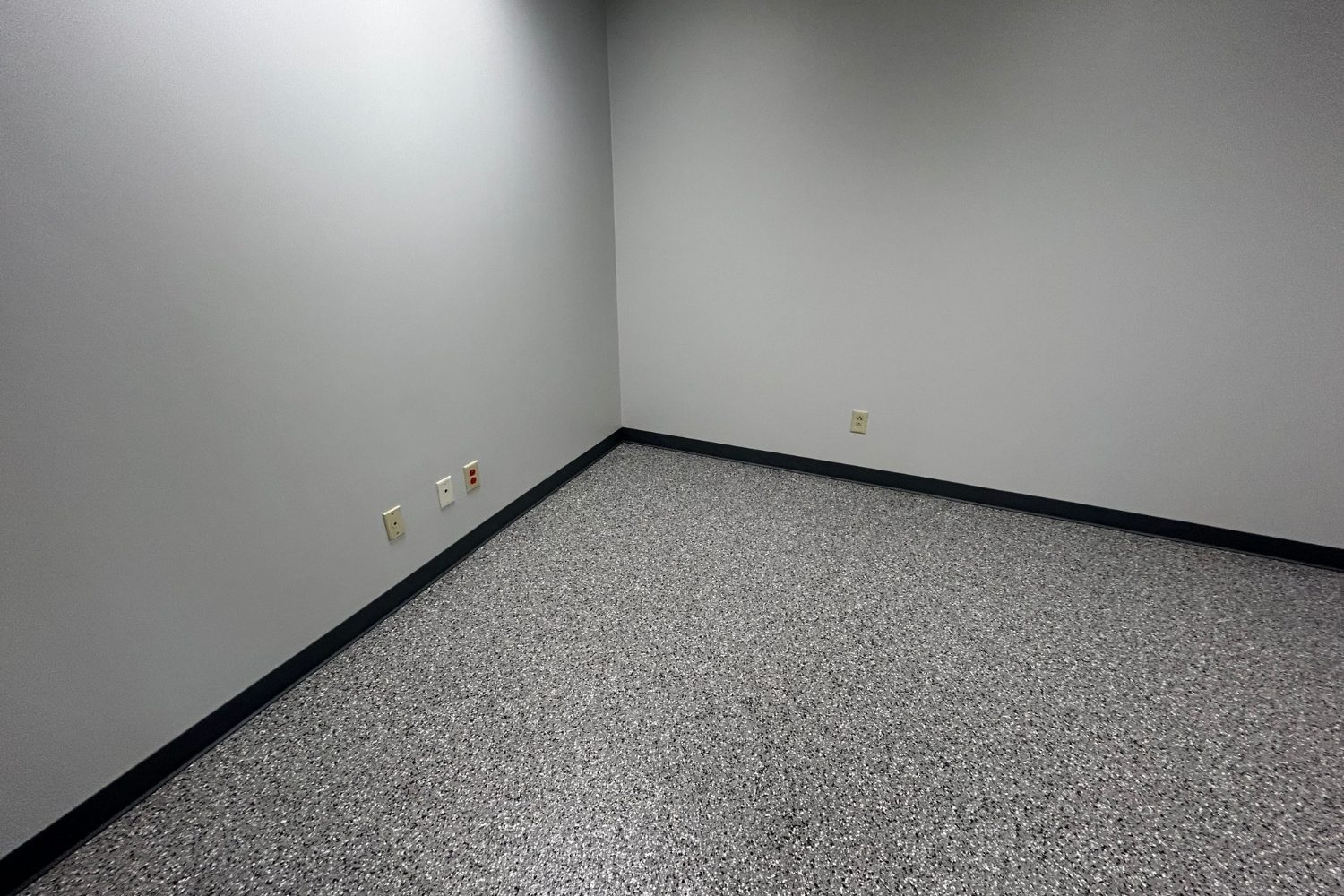 - Epoxy Painting: High-quality epoxy paints were applied to the walls, door frames, and new cove base, resulting in a robust, long-lasting finish ideal for a professional environment.