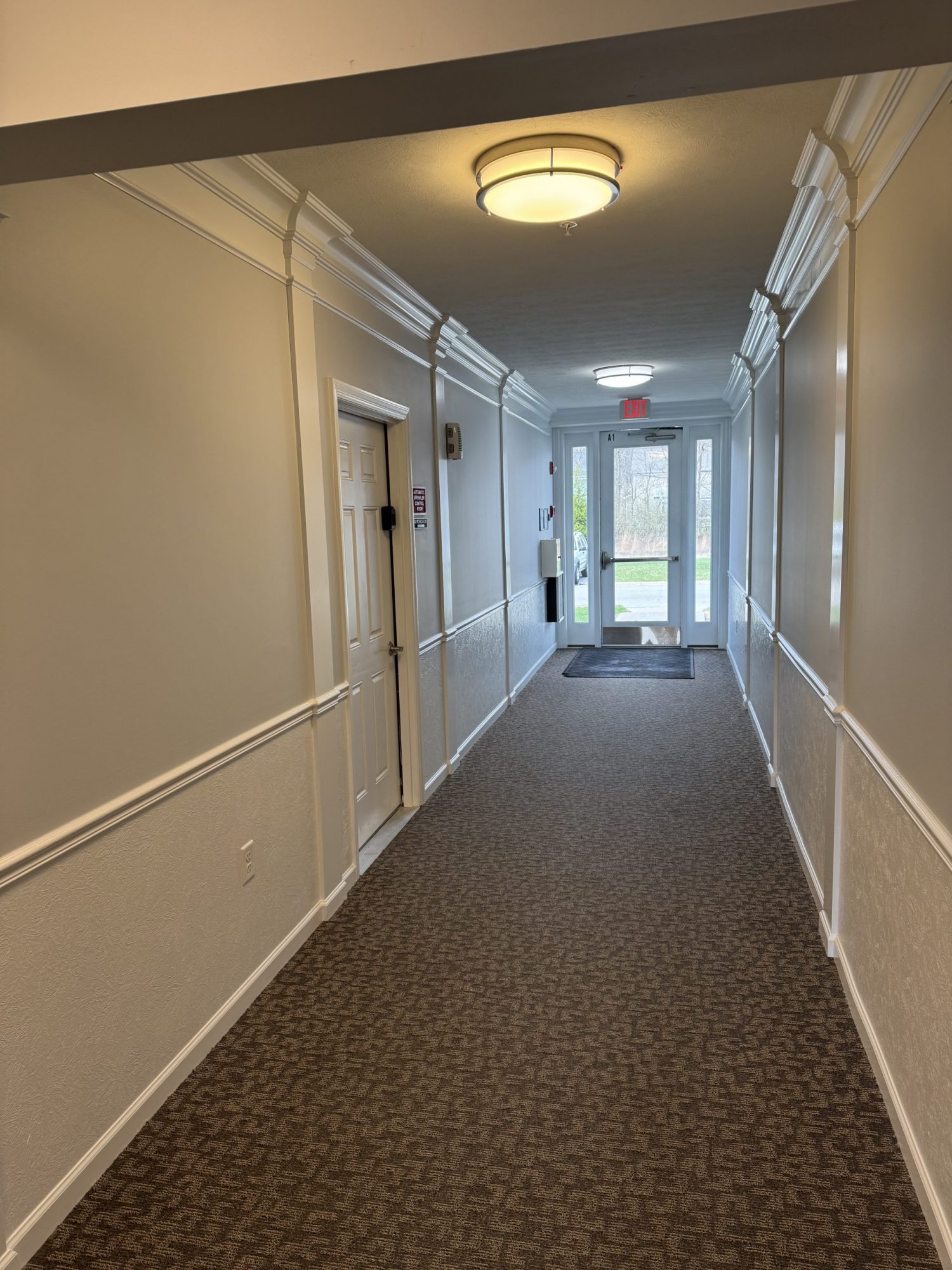 painted apartment hallway with outside entrance door