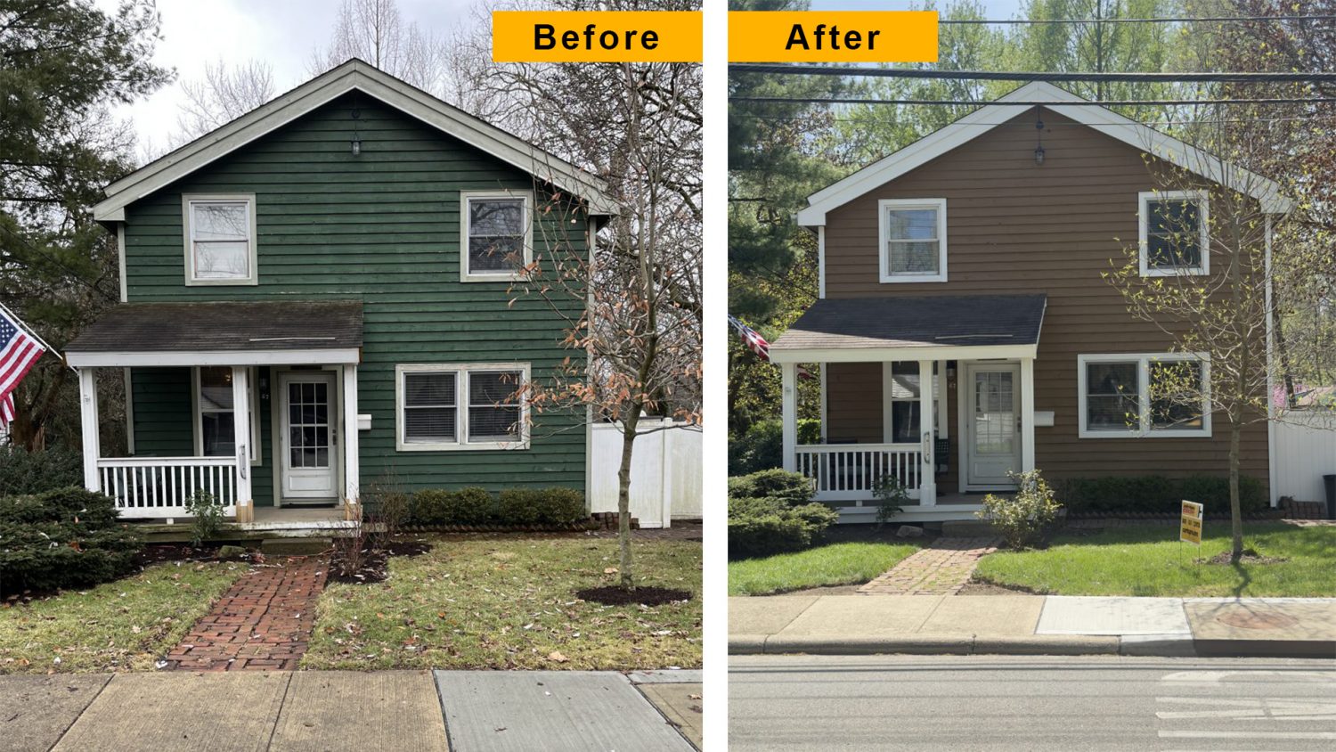 Our Residential team painted the cedar siding, trim, front porch, foundation, window trim, and door frames for a client that requested a big color change.