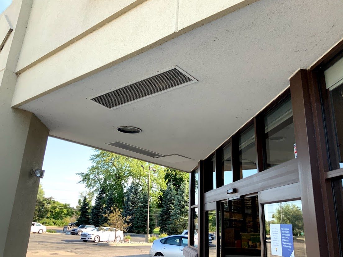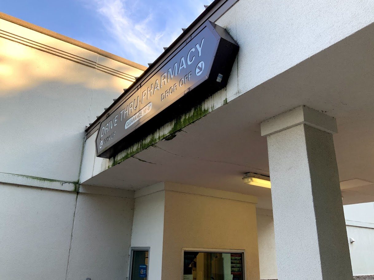 This project took place during COVID testing that was being run out of the pharmacy. The drive through needed to stay open during the project. Traffic management was required to make sure that COVID testing operations were not interrupted during the painting and repair project.
