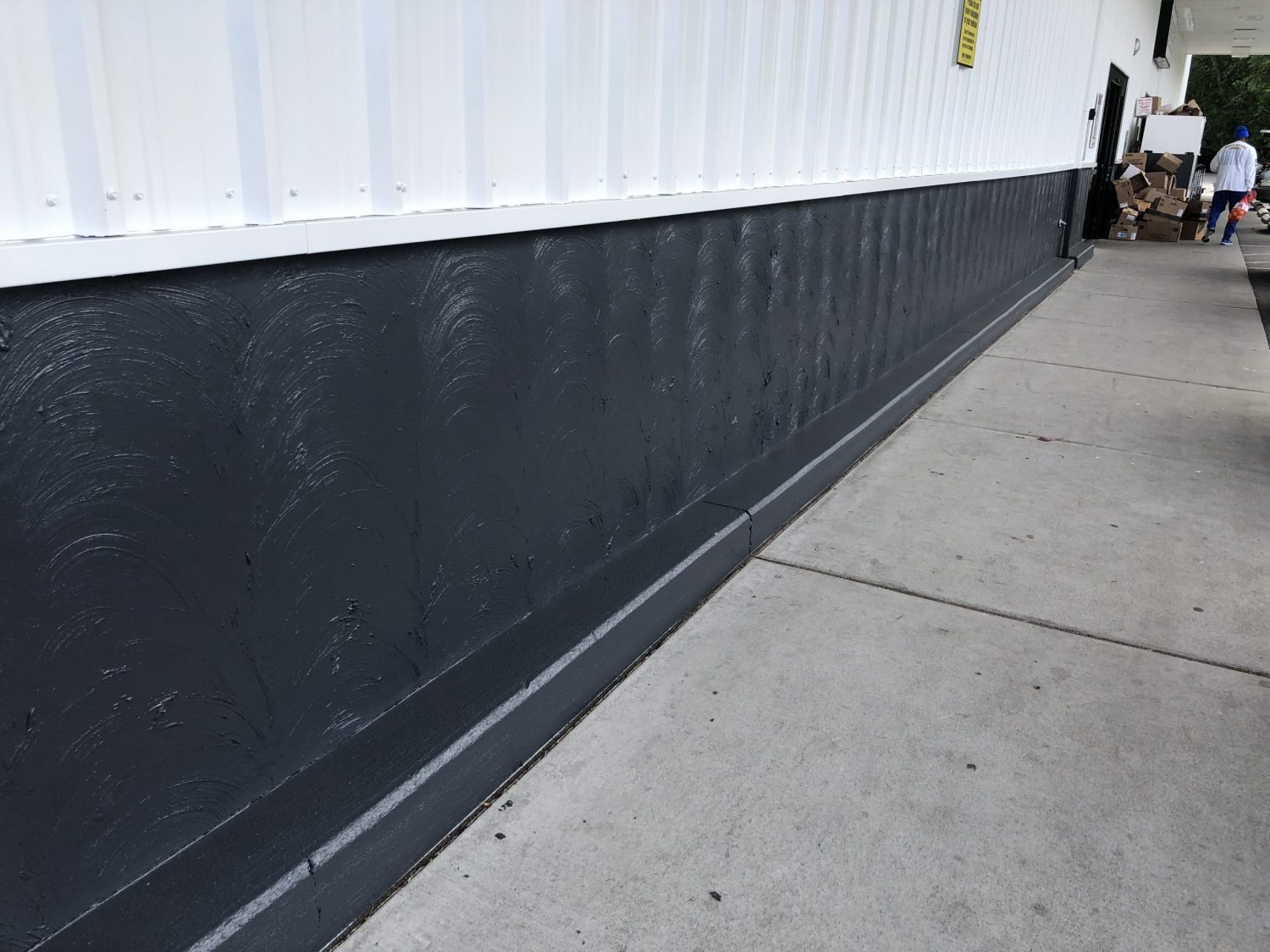 The body, sides, rear, and roof of the building all needed to be painted. This Included box bins and trash enclosures which were all to be painted white and gray, two-tone, to match the same look as the wall. Some touch-ups were needed to remove rust and prime the building’s surface.