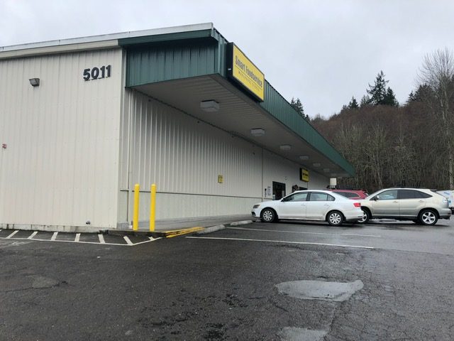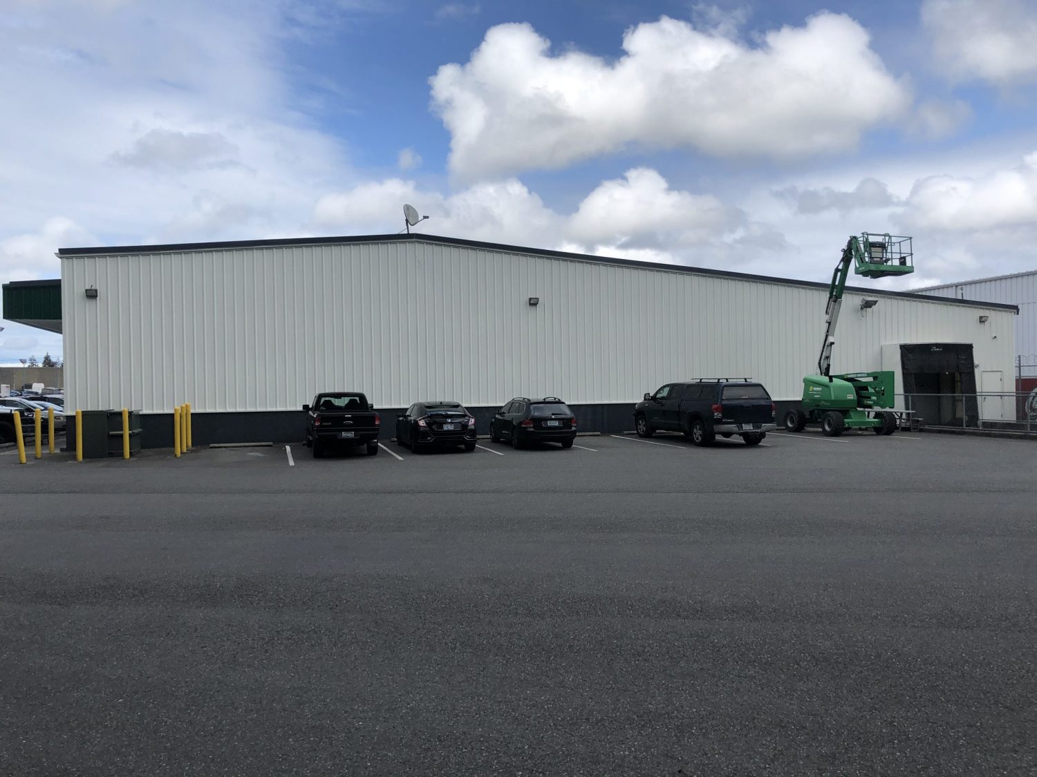 CertaPro Painters® of Tacoma, WA was hired to work on a one-story warehouse in Bremerton, WA. The building was pressure washed, and areas with surface rust were cleaned with a wire wheel brush and primed. The building was painted Snowfall White with a three-foot strip of PMS Gray at the base of the building, and a one-foot strip of PMS Cool Gray at the roofline. The awning was painted Shamrock Green, with the lid painted Snowfall White. Items such as trash enclosures and box bins were painted in the same color scheme as the building. If you need help with a warehouse or industrial painting project, see our industrial painting services page.