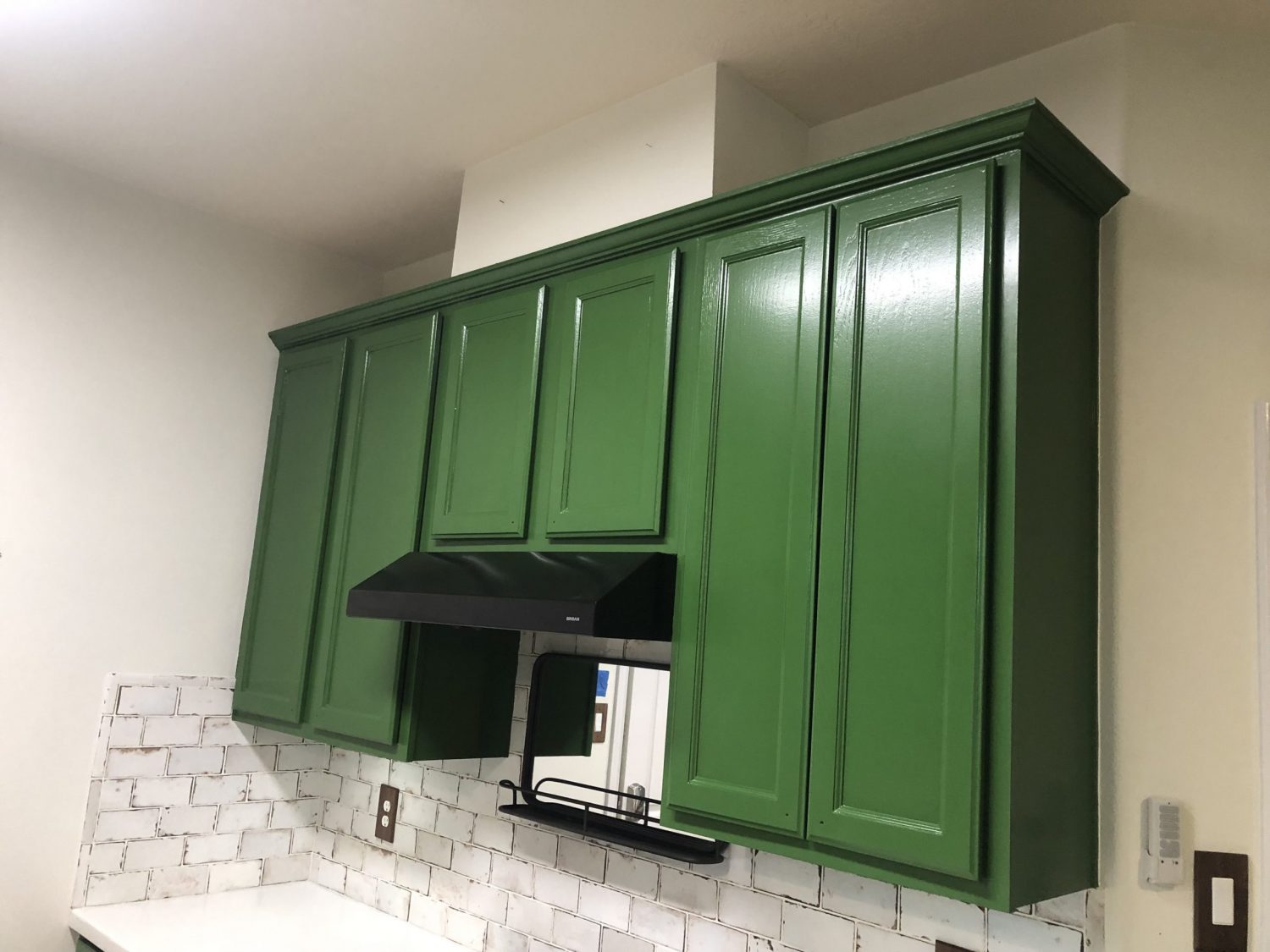 Our team transformed these kitchen cabinets using Mountain Forest PPG1130-7.