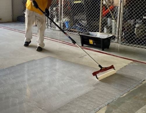 If there are cracks or divots in the concrete, they will be patched and repaired prior to applying and floor coatings.