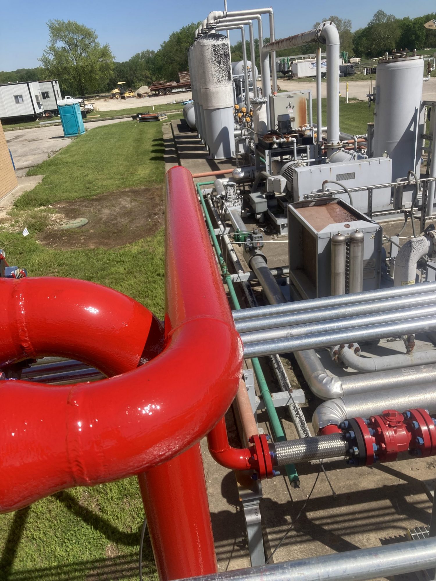 We needed to prep the pipes, and provide lasting protection against the Ohio climate. We were able to accomplish this by utilizing a three step system that involved rust inherited primers and and epoxy top coat.