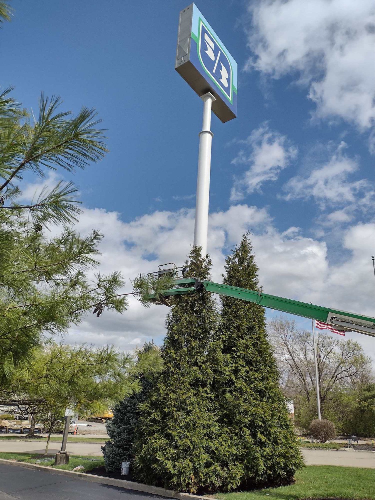 CertaPro Painters® of Dayton were hired to repaint the mast of this tall 5/3 sign in Dayton, OH