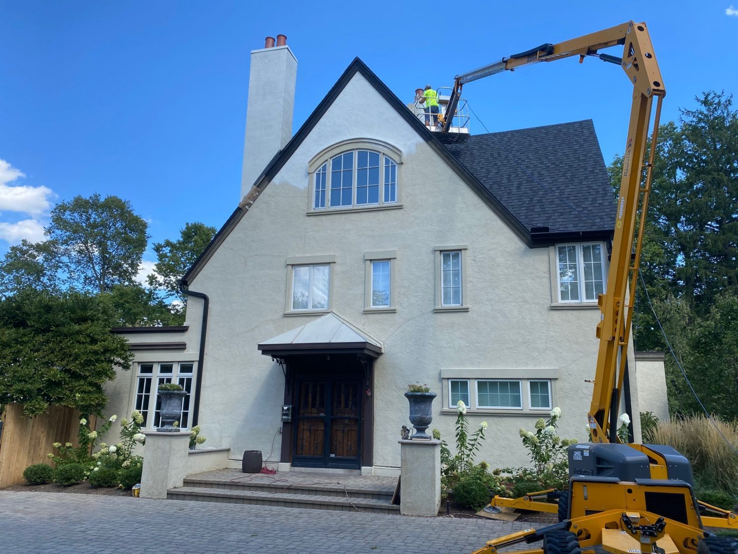 CertaPro Painters of Dayton were called out to refresh the exterior of this expansive Oakwood home. With two very tall chimneys requiring special equipment, special caulking techniques and various carpentry repairs, this home is a great example of the detailed and beautiful work our team does.