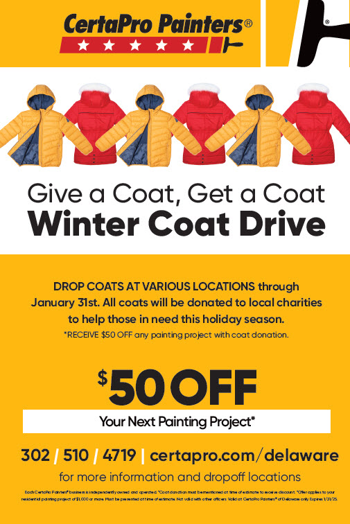 Our Annual Winter Coat Drive is back! Donate a new or gently used coat and receive $50 OFF your next painting project.*