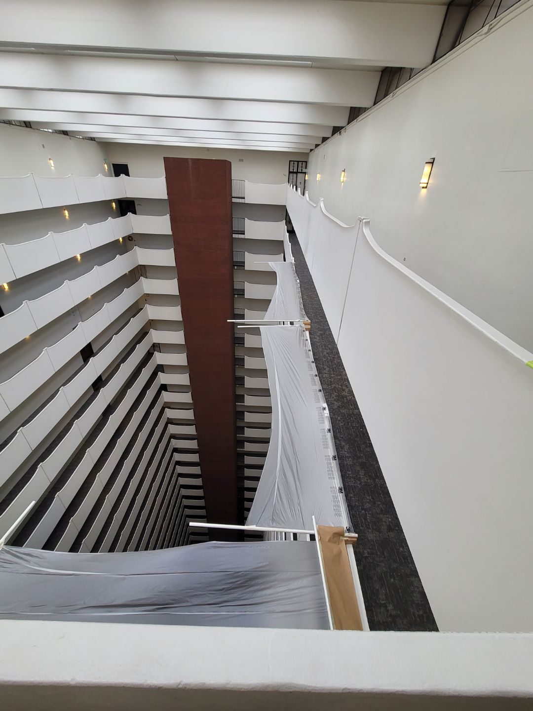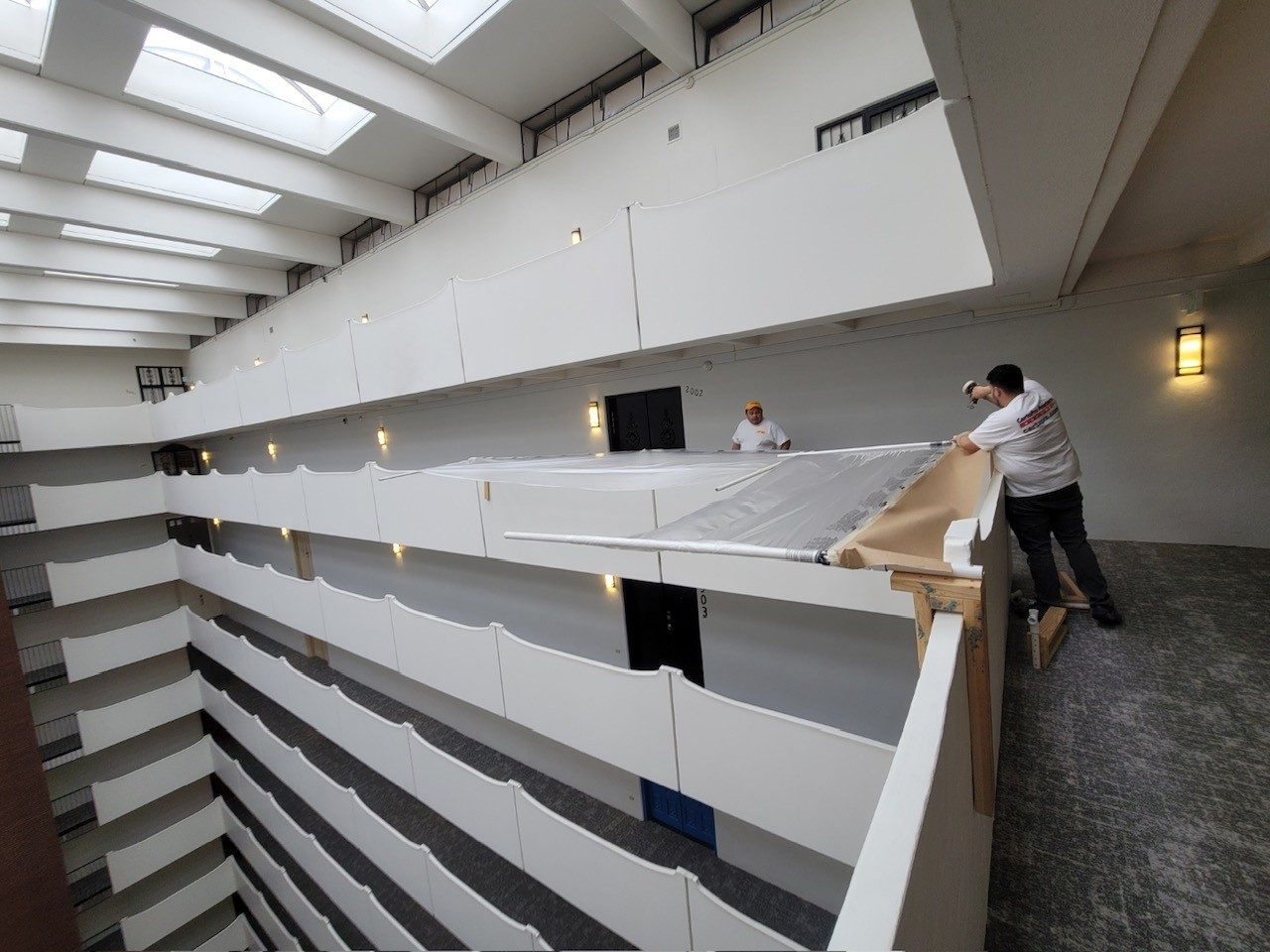 The final result is a refreshed, bright white atrium.