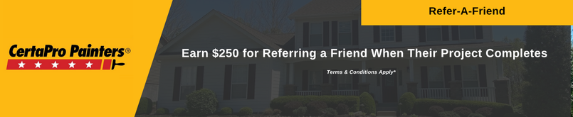 Terms and Conditions The project must be completed by CertaPro Painters® of South Denver, CO to qualify. Your friend can call us directly or fill out the form below. You do not need to be a current CertaPro Painters customer to participate in this referral program. This program applies to both residential and commercial properties. You may not refer yourself. Only one referral is allowed per address. CertaPro Painters® of South Denver will verify referral status. If the person’s name and address are already in our system, they will not be considered a new referral. The referral must be entered into our system as your referral prior to their first appointment. The referral must schedule an estimate with a Sales Representative within 30 days of the referral to qualify. The referred customer must mention that you referred them before their estimate appointment. You cannot claim a referral for someone already in our system after the fact. Please allow 4–8 weeks after the referred customer’s project has been completed and paid in full for the $250 referral check to be sent. You are responsible for any federal, state, and local taxes that may apply to referral fees paid to you. Any required tax reporting forms will be submitted to the IRS. Referral entries that are lost, late, illegible, or incomplete for any reason will not be eligible. CertaPro Painters® of South Denver reserves the right to modify, suspend, or terminate this promotion at any time without notice and to disqualify any entry in good faith. CertaPro Painters® of South Denver reserves the right to verify and disclose referral/referee information.