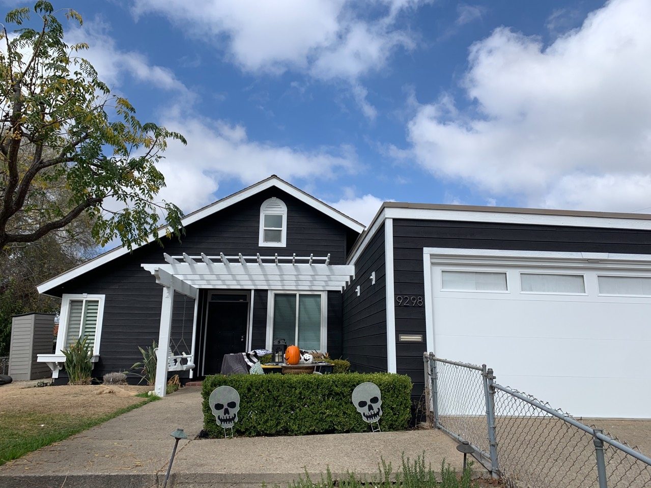 This home went from a faded out tan to a modern charcoal gray with white trim.