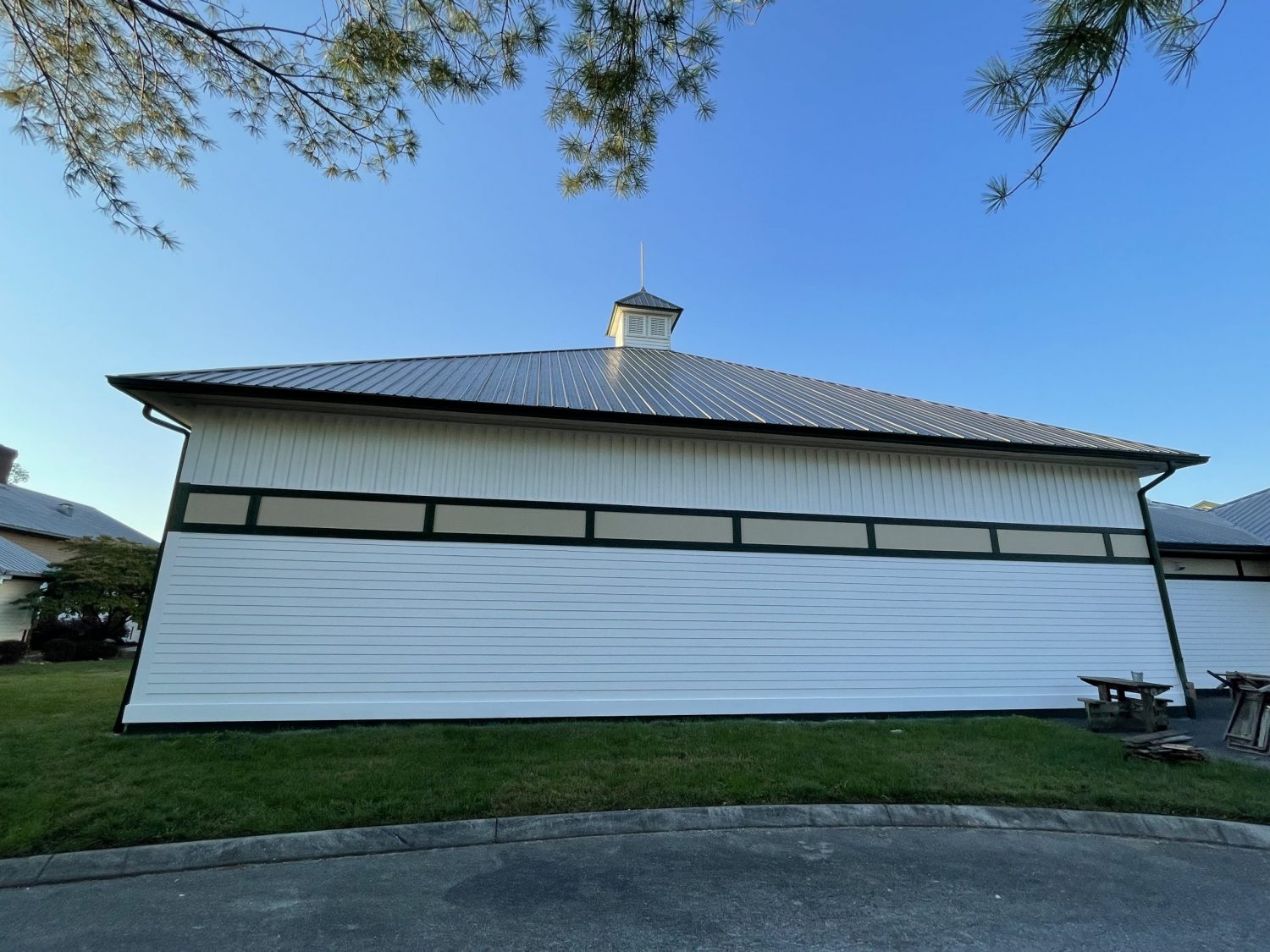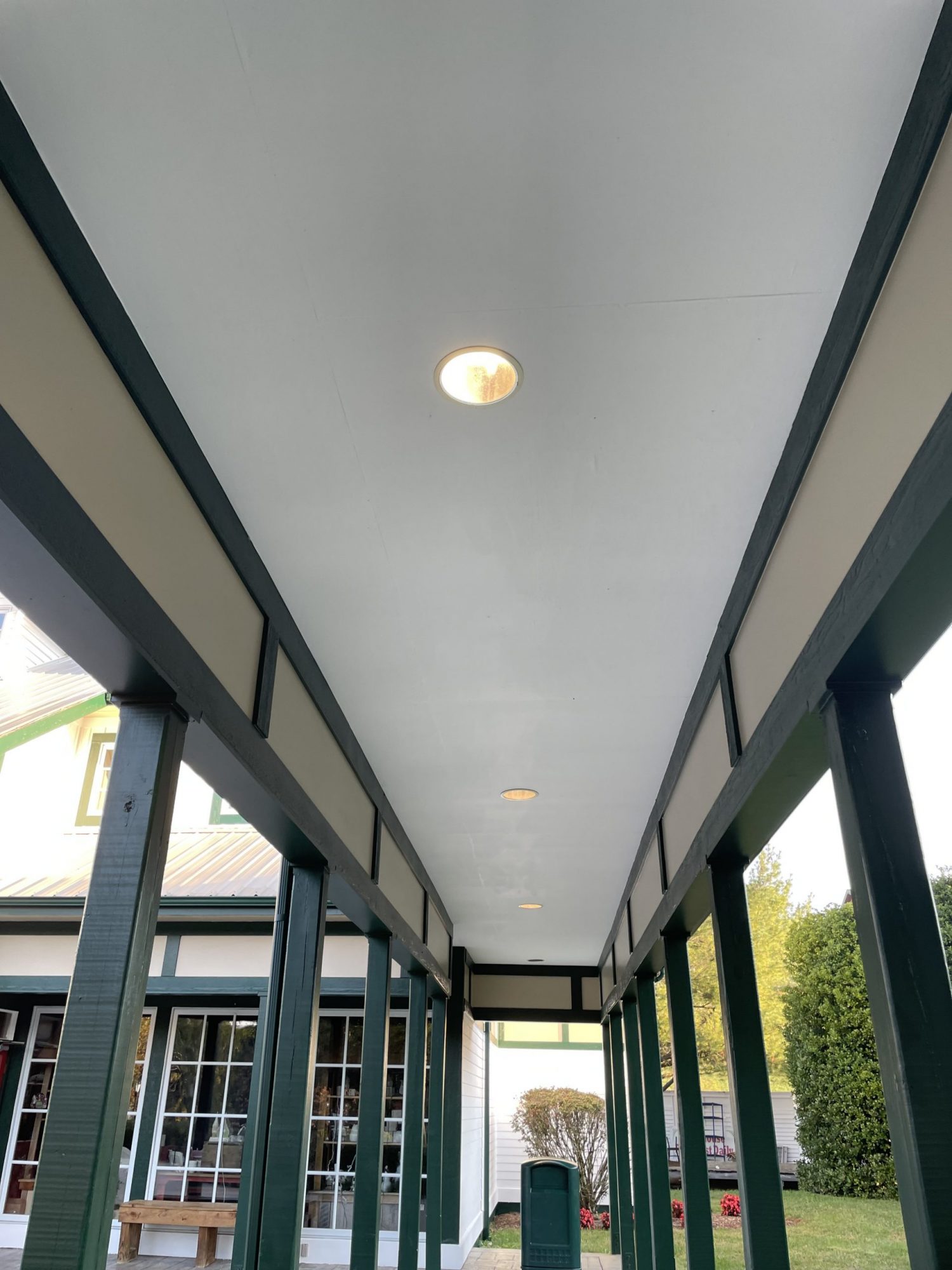 The outside of the building was fading and required quite a few wood repairs to include: 38′ of the fascia at the front, 20′ of soffit at the front, 10′ of 1x 6 ceiling trim at the front & 2′ of soffit on the left side