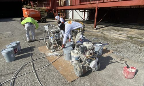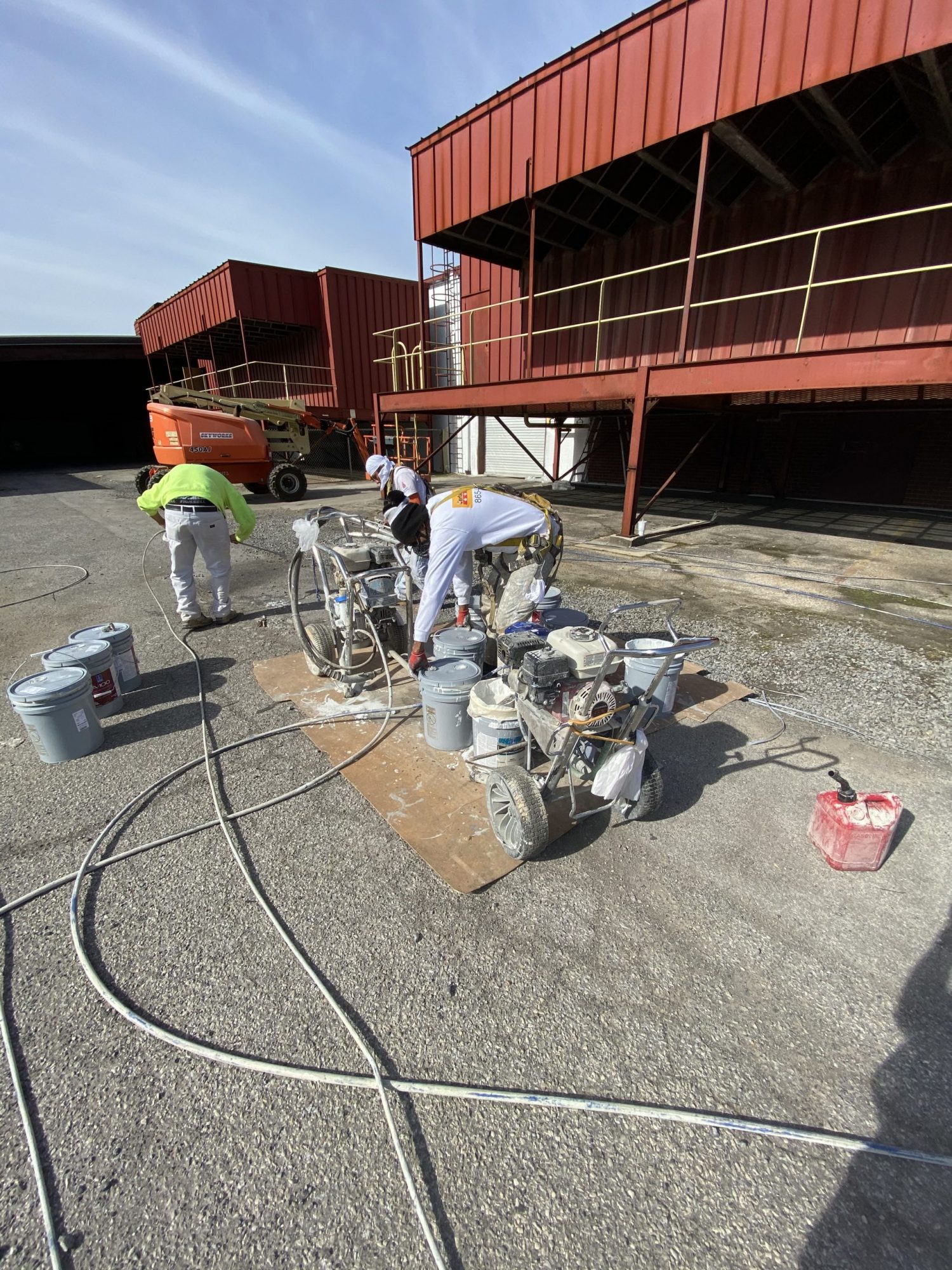 Job Site Supervisor and Crew begin prepping their sprayers for a full day of production.