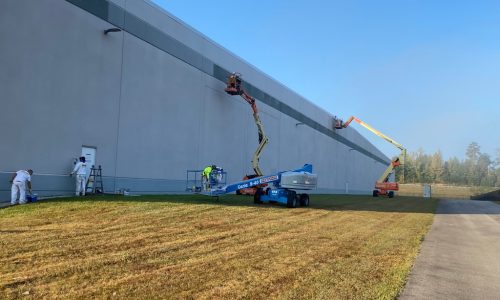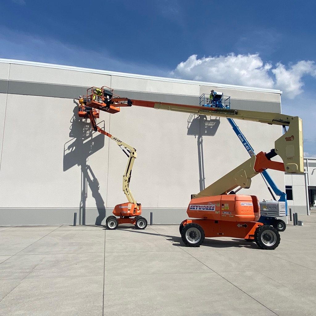 To ensure safe access and proper paint application, we also brought in one 80-foot articulating lift and two 40-foot straight booms to complete the project within the customer’s timeline.