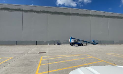 The large facility was built in 2013 and required routine maintenance painting as part of the building’s preventative maintenance schedule. The exterior walls were showing their age due to the mildew and grime from years of weather exposure.