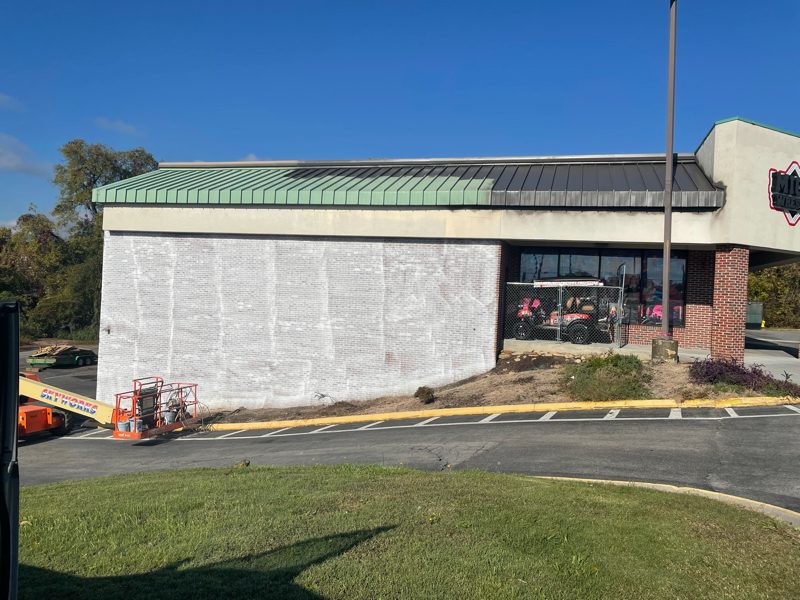 CertaPro Painters® took pictures during their work on the shopping center exterior, showing the processes and tools used to give it a professional and appealing finish.
