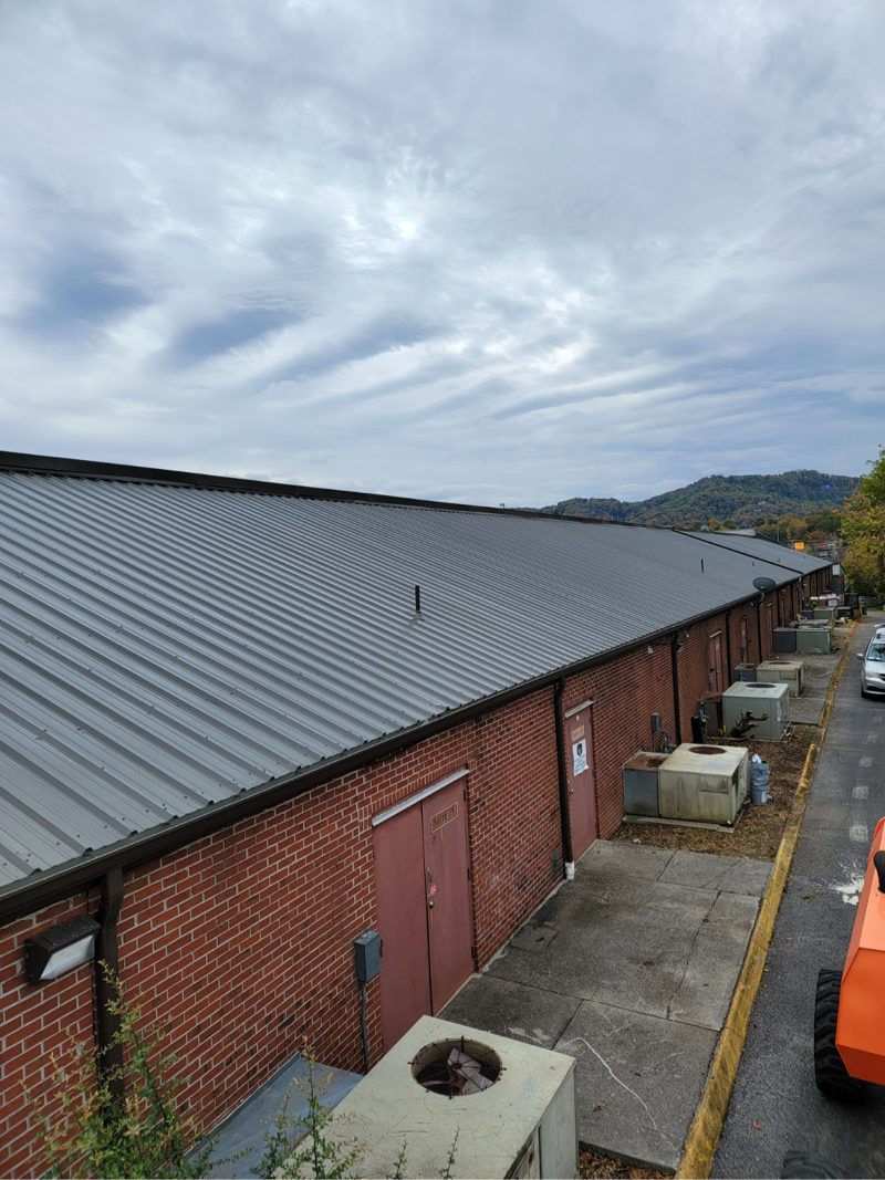 This project involved painting the metal roofs, stucco, brick, man door & frames, monument sign, bollards, railing at the front of the building, beams and framing on walkway covers, rear metal platform components & rear wall of the Micro Wrestler’s building. With minimum water access, we required a water trailer to pressure wash the entire building to include the roofs. Due to the building’s sheer size, we used an 80′ articulating lift as well as a 60′ straight boom to paint the roofs, stucco, and brick surfaces.