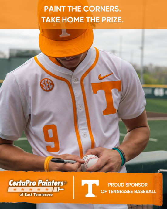 Signed baseball offer is only valid to individuals who follow the contest criteria, including following the social media accounts of CertaPro Painters of East Tennessee on Instagram or Facebook, liking and sharing the social posts dedicated to the giveaway. Contest ends at the conclusion of the 2026 regular season for the University of Tennessee baseball team. Offer is limited to a single winner per week. Winners will be contacted through direct message on social media. Winners will be required to pick up the signed baseball in person at the CertaPro offices located at 10904 McBride Lane, Knoxville, TN 37932. Offer does not require the booking of estimates or services.