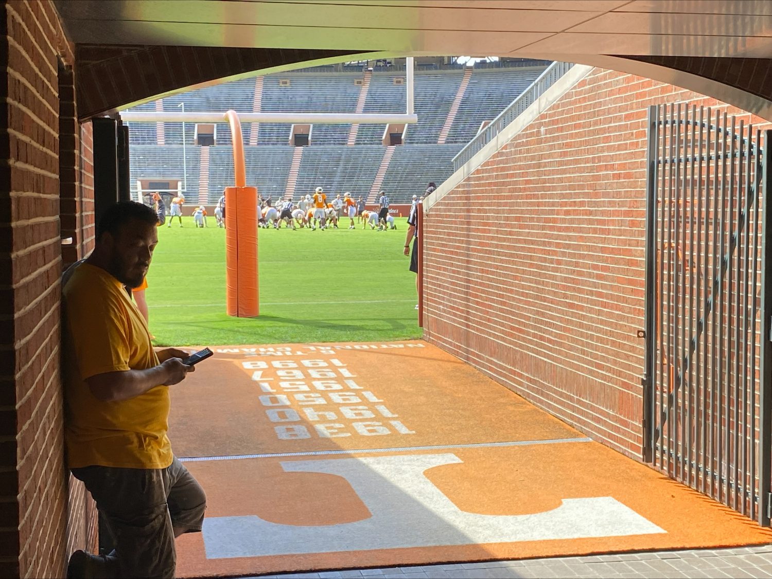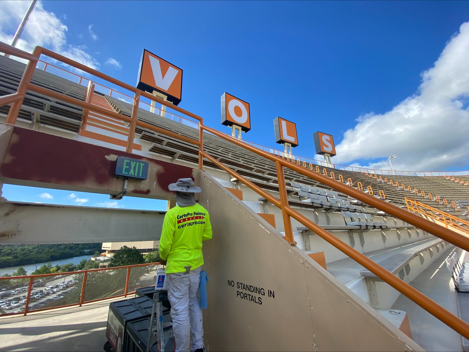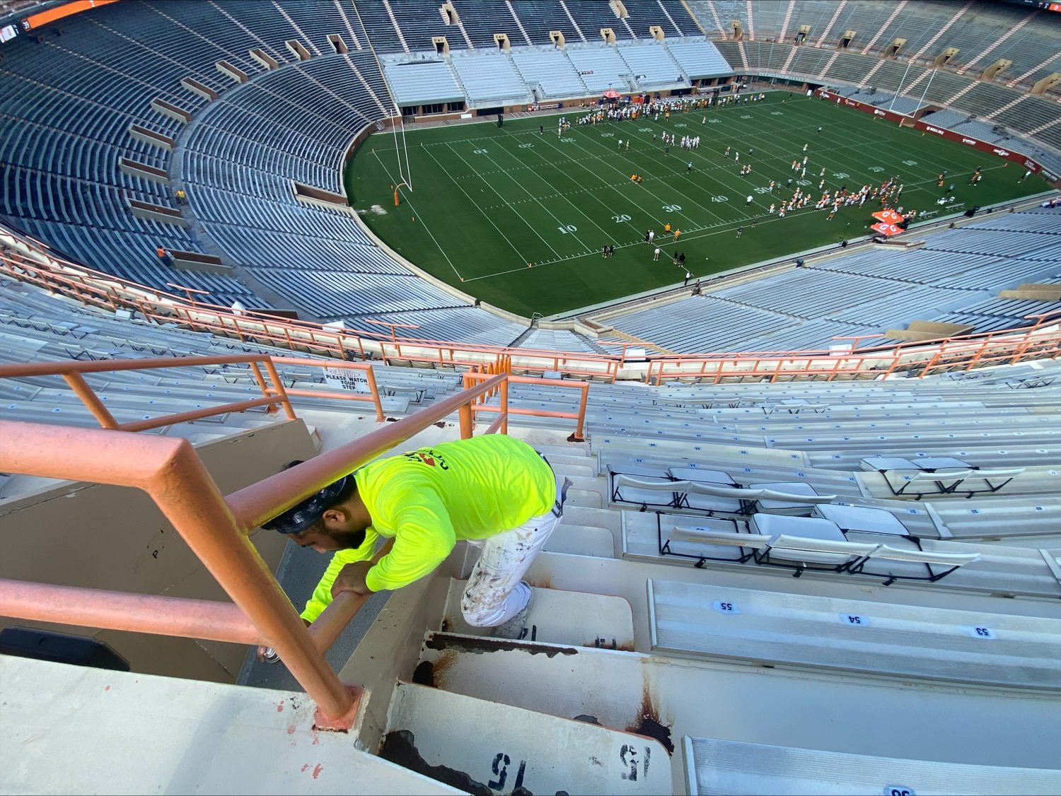 One of our crew members hard at work painting the walls in the Tennessee Terrace at Neyland Stadium.
