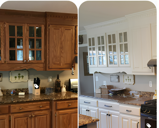 With the surfaces sanded and prepped, the transformation truly begins. Our skilled painters apply high-quality paint to the cabinet doors, utilizing techniques that ensure a smooth, even coat. We understand that the doors are a focal point of your cabinets, so we take extra care to achieve a flawless finish. Our team carefully selects the right type of paint, tailored to your specific needs and preferences, ensuring durability and a stunning appearance that rejuvenates your space.