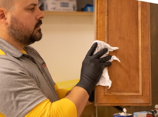 The first step in our cabinet refinishing process at CertaPro Painters of East York & Don Mills is meticulously removing all doors and hardware. This crucial phase ensures that every nook and cranny of your cabinets can be accessed and treated with the utmost care. We carefully label and store all hardware to guarantee a seamless reassembly later. This methodical approach sets the stage for a flawless refinishing job, ensuring that every surface, edge, and corner is perfectly prepped for the next steps.