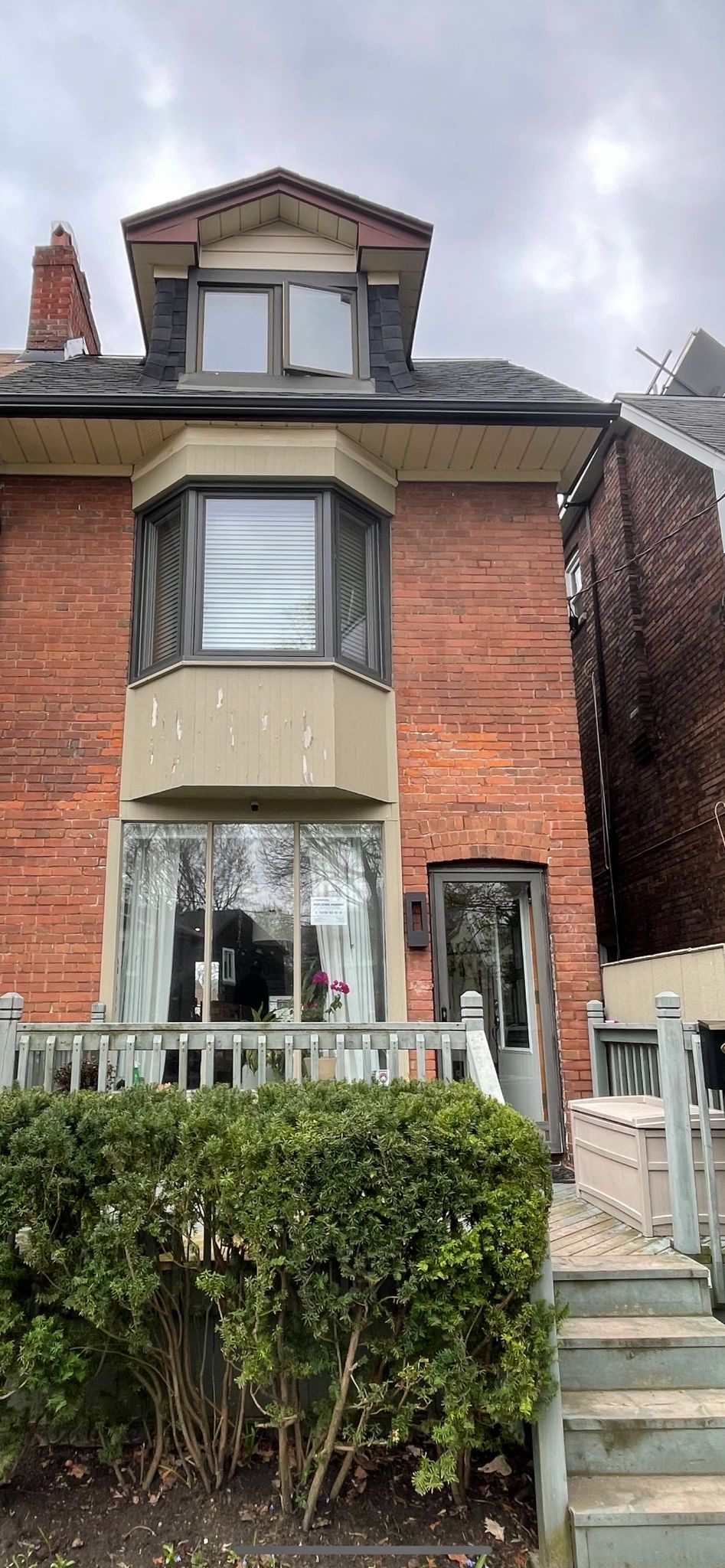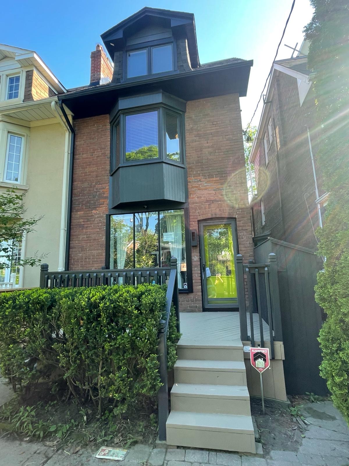 We painted the worn trim black at this beautiful brick home. Slide to see the before picture.