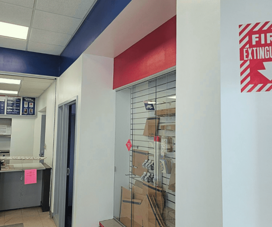 - Surface Preparation: Extensive drywall repairs, removal of old vinyl signage, and installation of commercial-grade corner guards for durability.