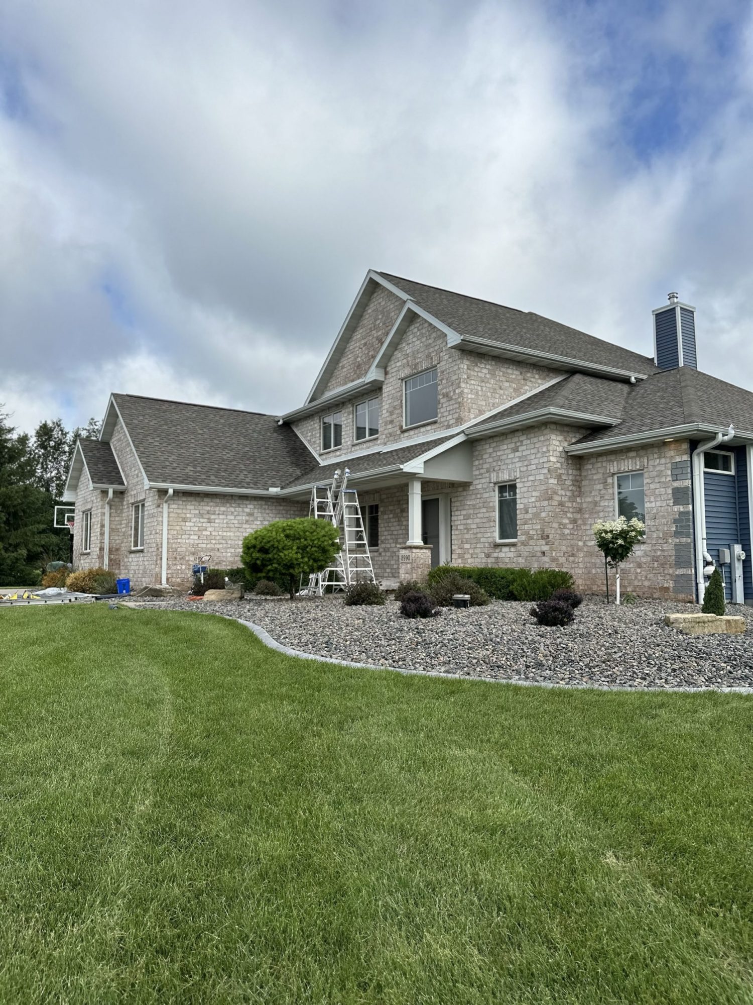 Exterior painting on brick on front of house.