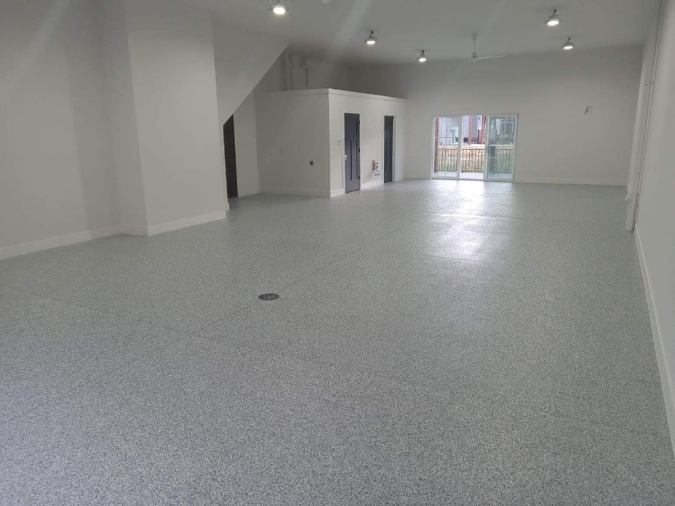 This customer wanted to update the floor in their garage/office space. We updated the floor coating with a speckled or grain finish. The results look great!
