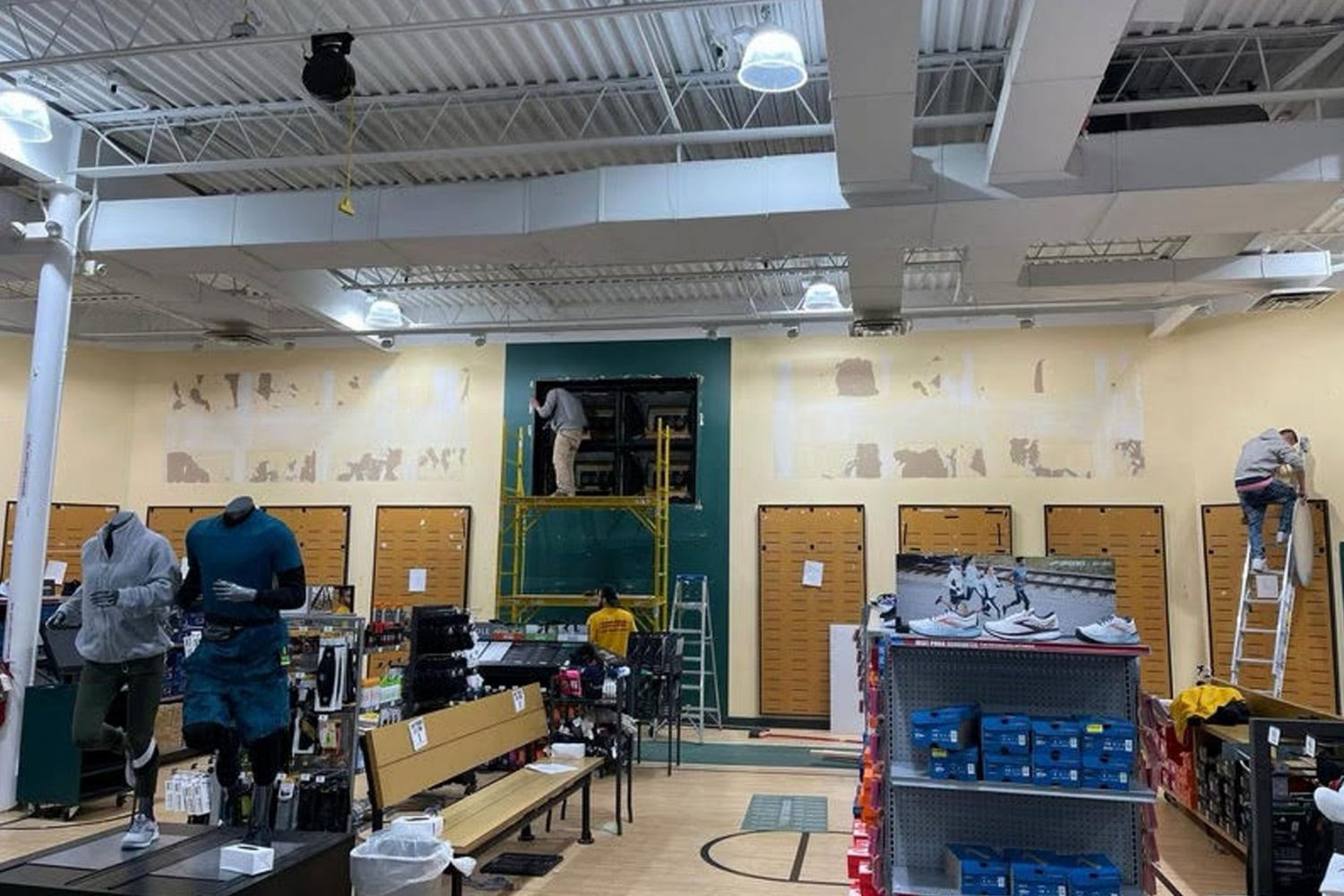The CertaPro Painters of Edison, NJ commercial painting team had to remove all graphics and signage before painting. They then needed to do drywall repair, prep and paint, and once completed hang new graphics supplied by Dicks Sporting Goods.