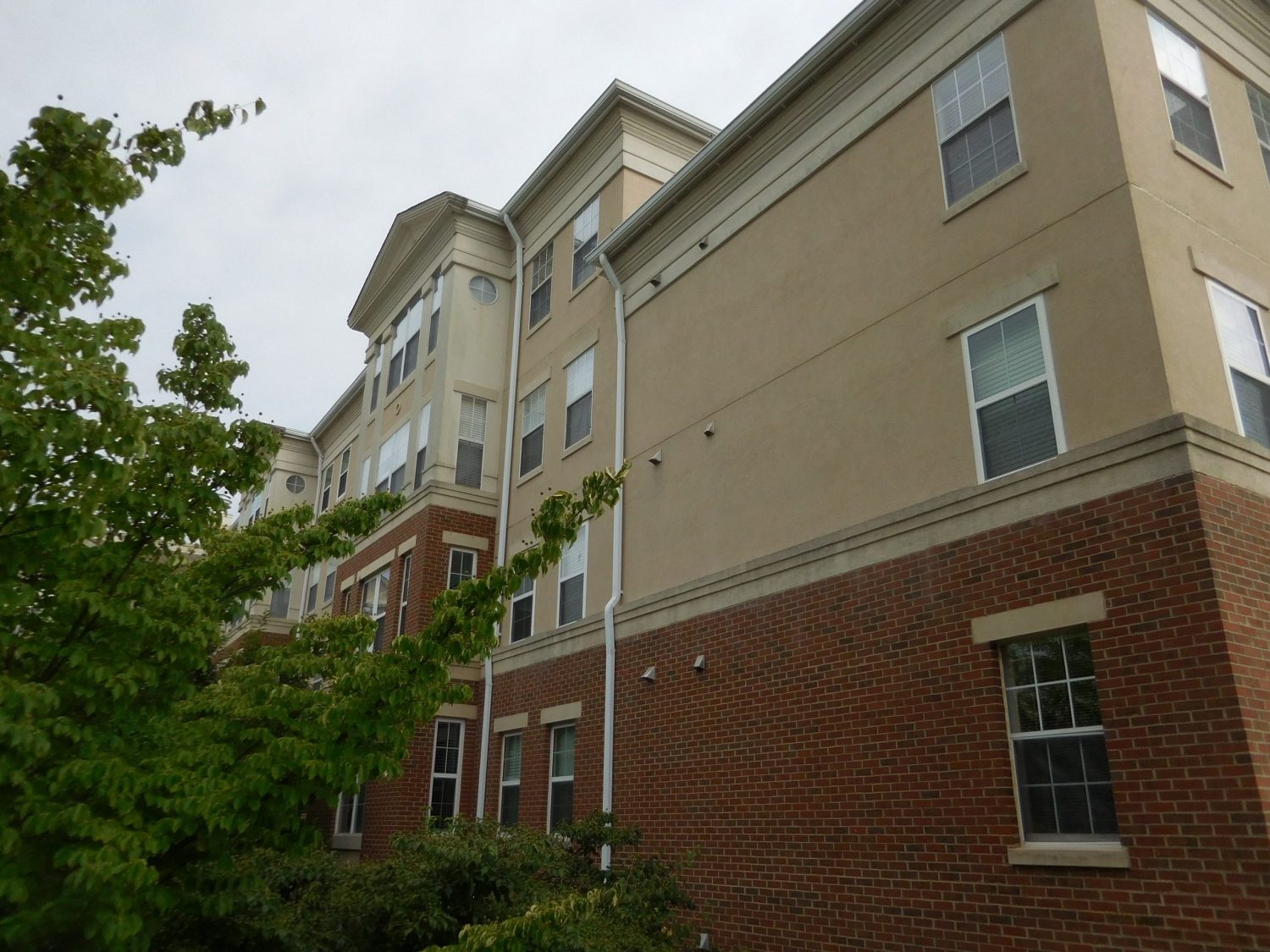 This project involved power wash cleaning, caulking, and painting of all EIFS and Stucco surfaces. It also included painting downspouts to match the color scheme of the buildings, and painting concrete mezzanine levels with a specialty product to help with self cleaning. This product helps minimize mold and mildew on flat surfaces as well.