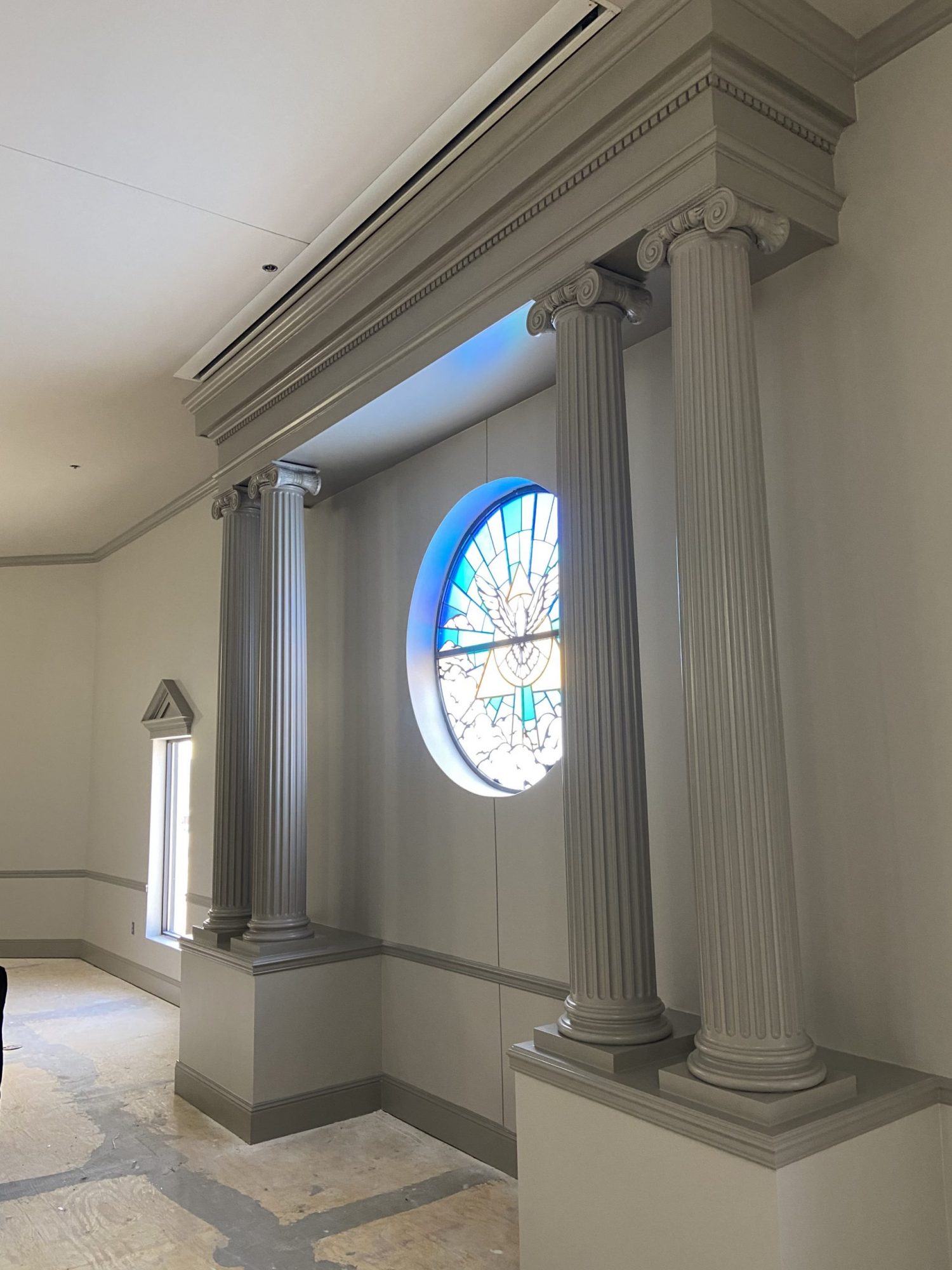 This image shows part of the church renovation process before completion.