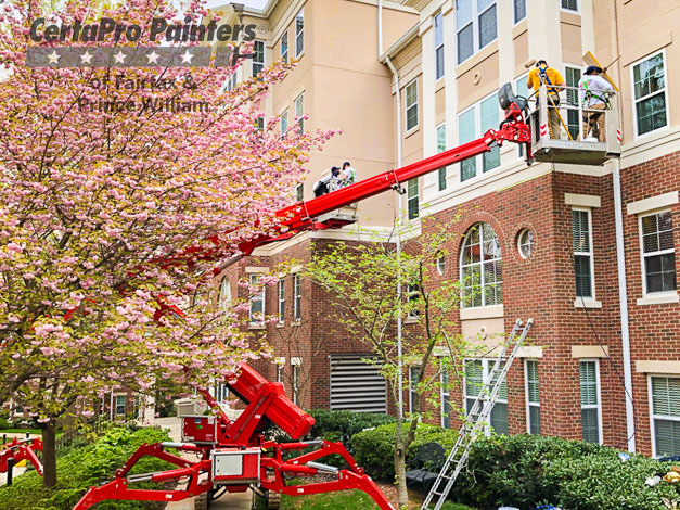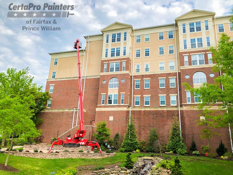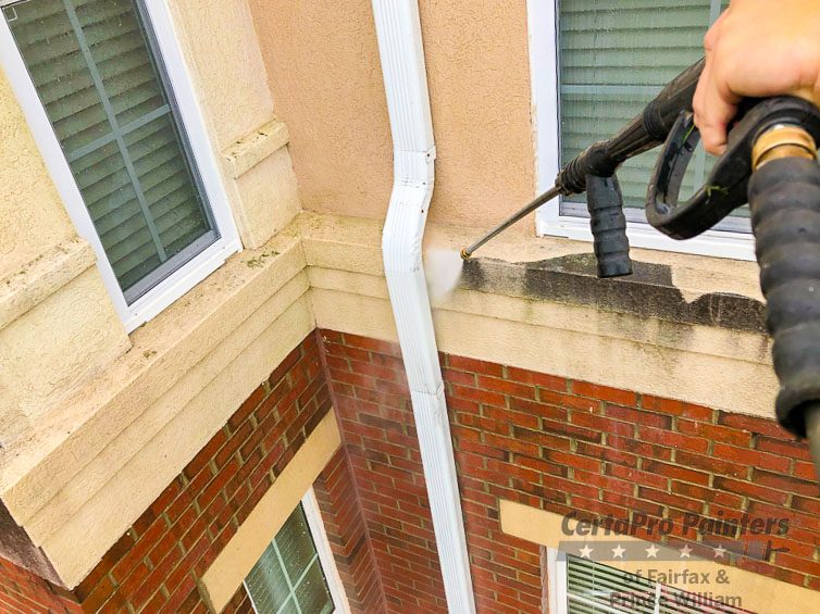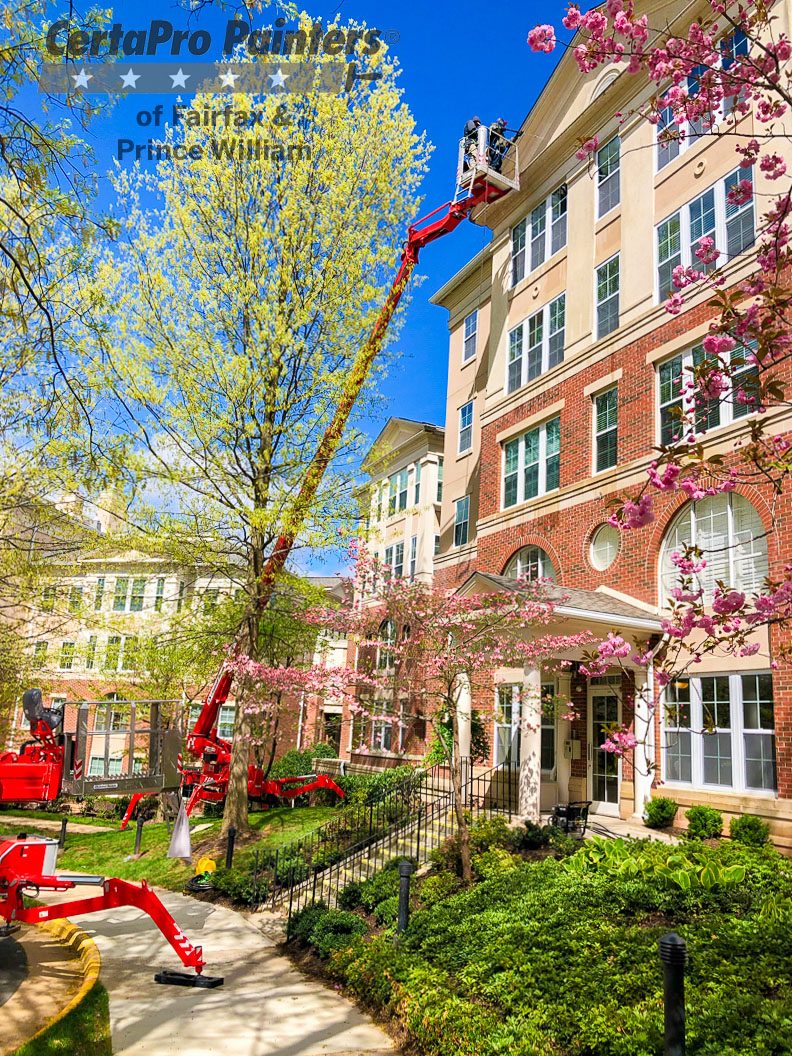 This commercial project was the second of five phases that we are doing in as many years to power and paint exterior trim of buildings at a military veteran retirement community.