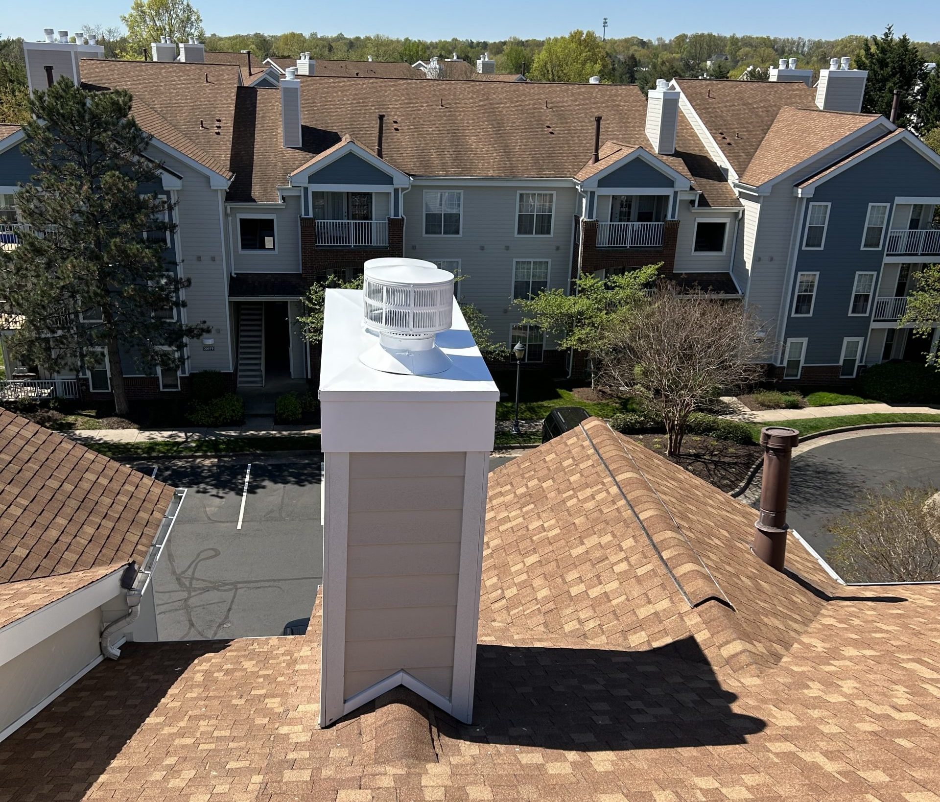 A condominium complex in Ashburn, VA was looking for professional preparation and painting of the 96 metal chimney chase covers and chimney caps throughout the communities’ 12 condo buildings. The overall goal was to assist in maintaining a maintenance cycle for their community.