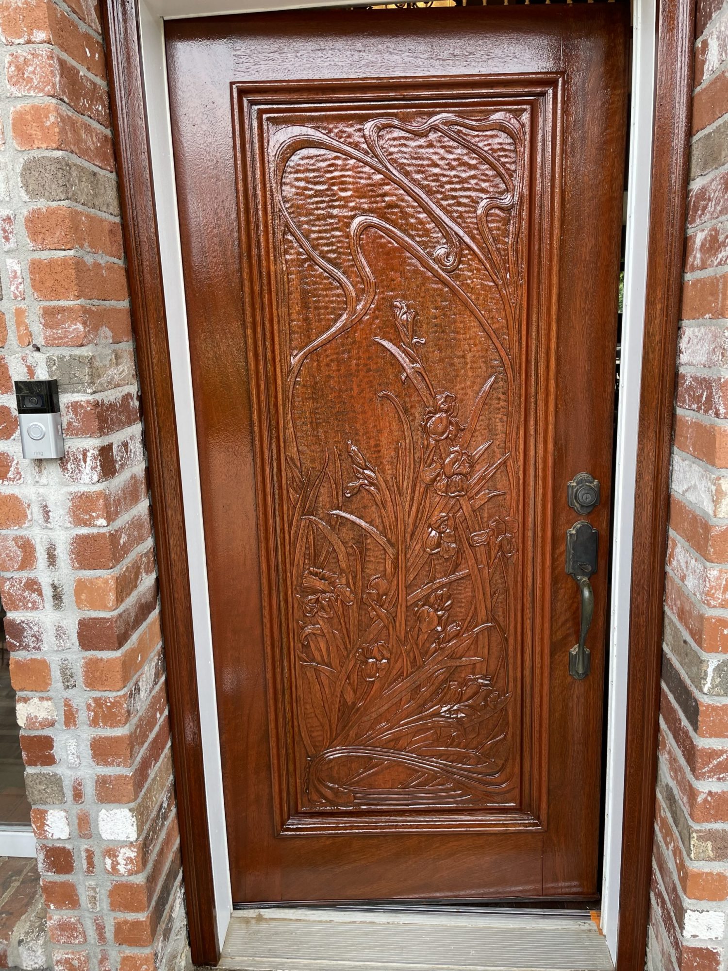 Do you have a wooden door or entryway thats a cut above the rest? If you went the extra mile to get a real statement door we have a painter, aptly named Art, who is expert in bringing them back to their original glory and keeping that way for a long time. Take a look at these two beautiful doors that were completely refinished and given an extra thick top coat to make their beauty last.