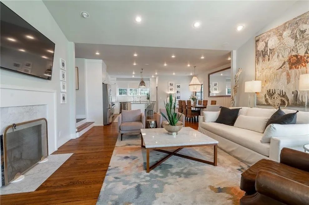 This lovely home received a bit of everything with an interior ceiling and wall painting in the kitchen, living room, and dining room, a bit of wallpaper in the bathroom, and a beautiful staining job on a screened in porch.