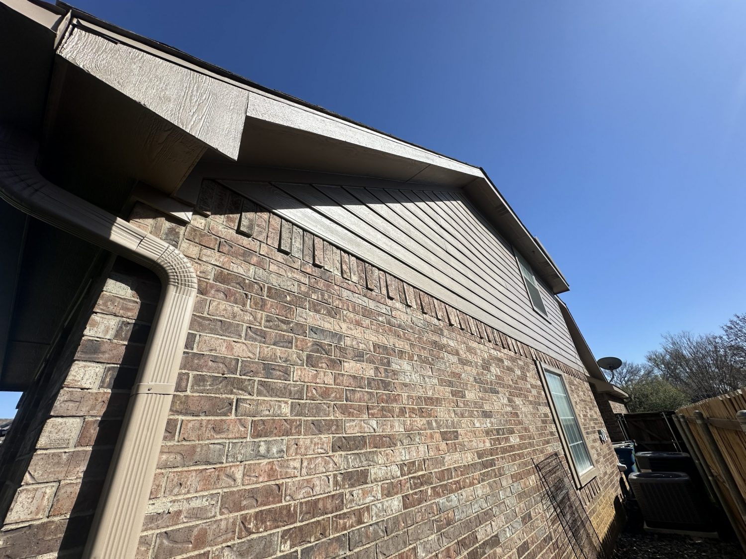 Process:The project began with extensive carpentry work, as our team carefully replaced numerous damaged and rotted boards to ensure the home’s exterior was structurally sound and properly prepared for painting. Once the repairs were complete, we painted the exterior surfaces (excluding the brick) in a neutral tan shade. This new color added warmth and balance, while complementing the existing brick for a clean, cohesive appearance.
