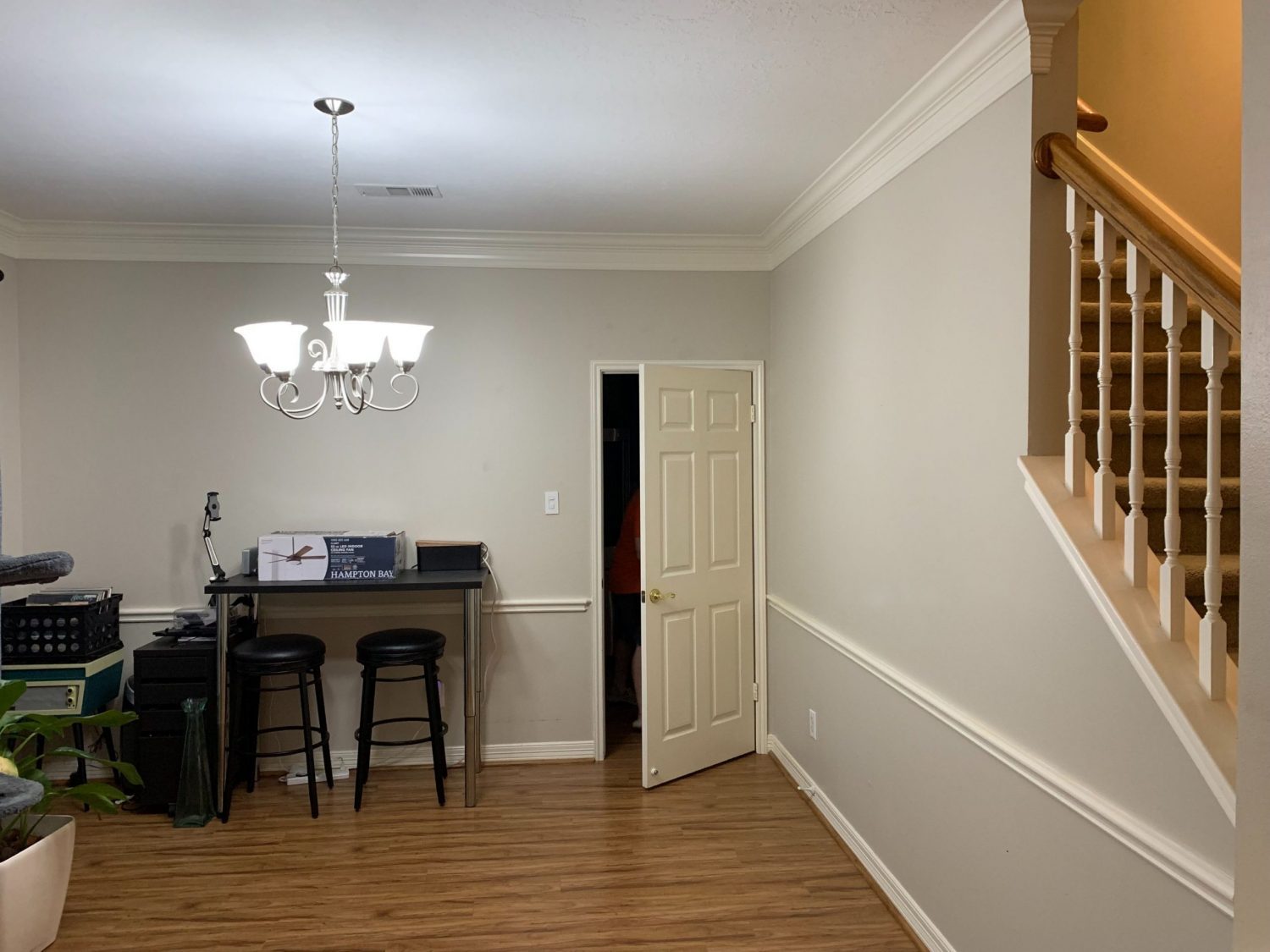 Our client’s formal dining room was in a need of a makeover. The homeowner felt this space was not useful in its current state. There was an opening to the stairwell and felt very formal. The homeowner was hoping to modernize the space and to use it as an office. Mandi Cooper was able to offer some guidance on the project.