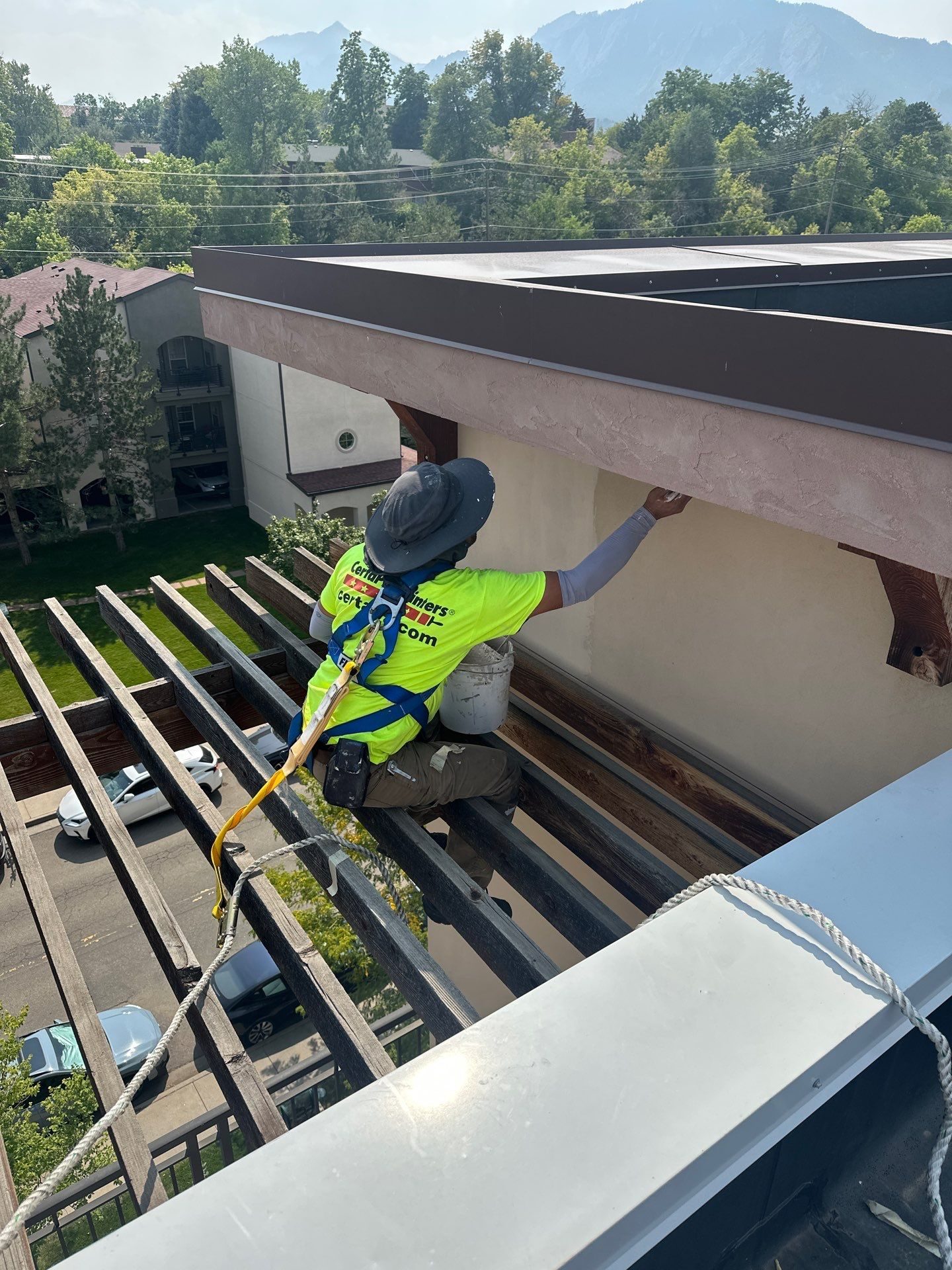 In November 2025, CertaPro Painters® of Fort Collins completed a comprehensive exterior repaint of The Pearl at Boulder Creek, a nine-story senior living facility located in Boulder, Colorado. After years of exposure to intense Colorado sun, seasonal temperature swings, and Front Range weather conditions, the building’s stucco exterior had become heavily faded and worn, reducing curb appeal and long-term surface protection.