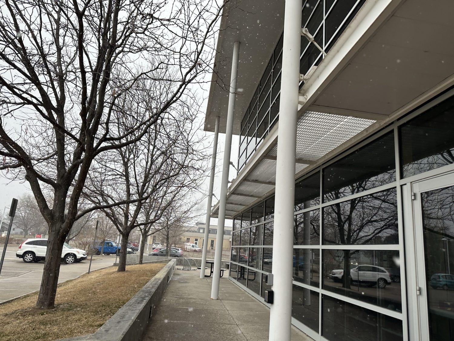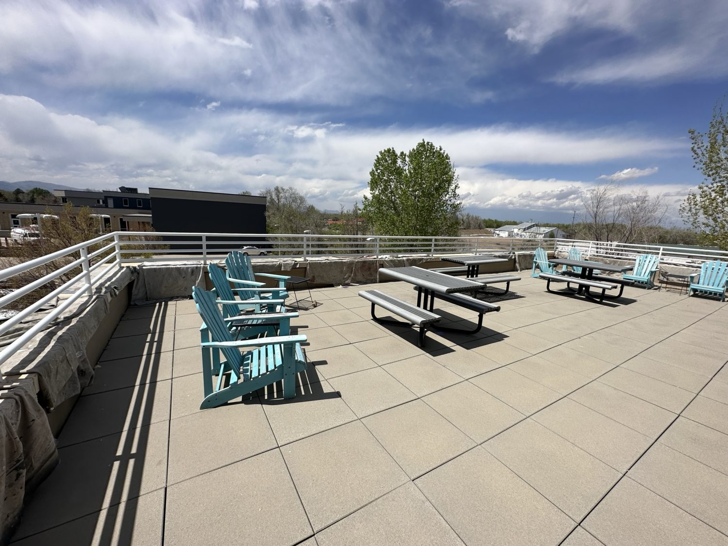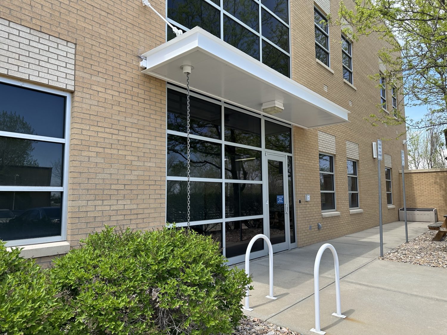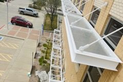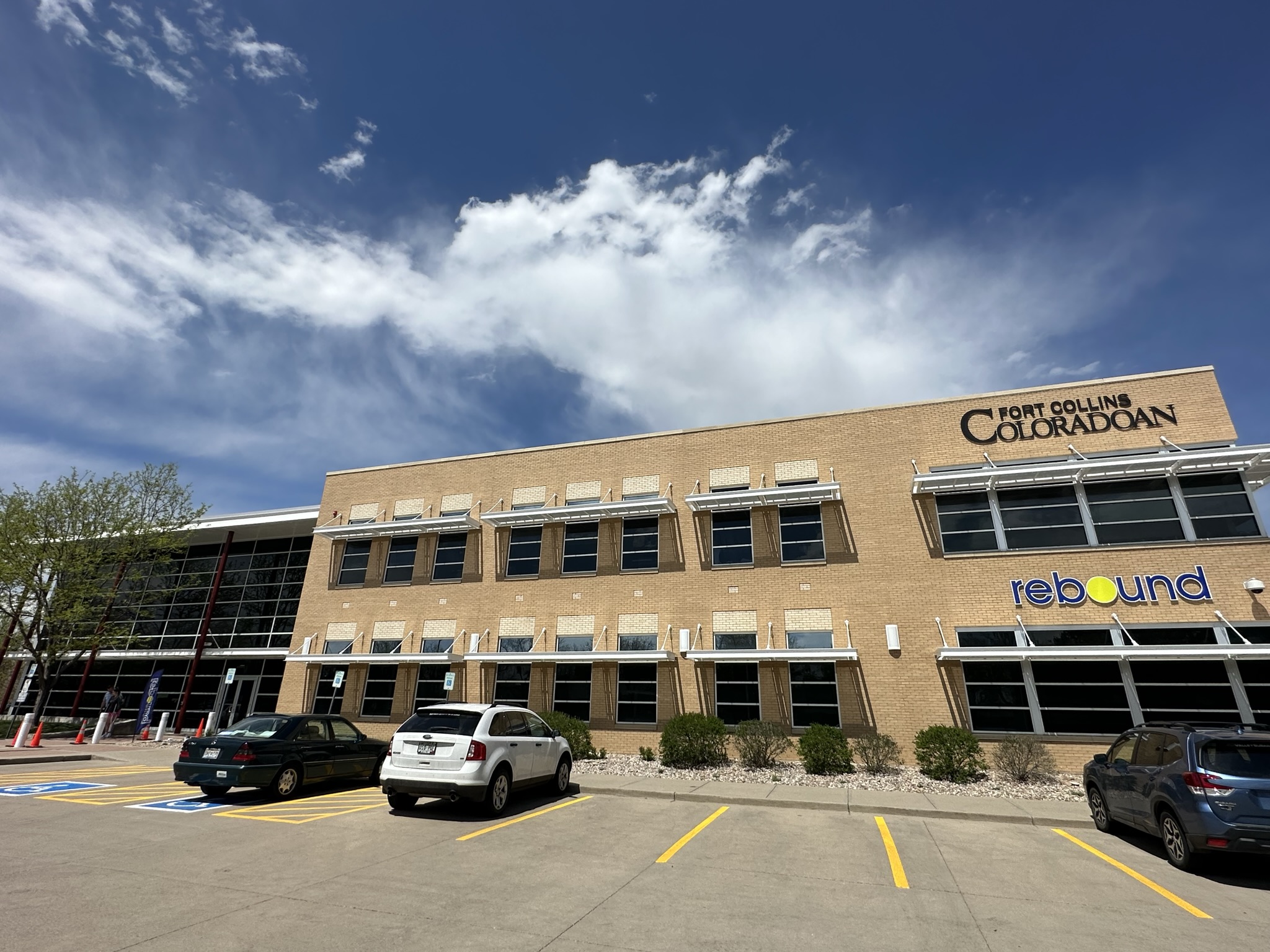 This is a large multi-tenant commercial office building in the heart of Fort Collins, the iconic Coloradoan building on Riverside Ave. Our painters refreshed the metal exterior and added some fun pops of color. This project took us one week to complete in May 2023. You can learn more about this commercial project below.