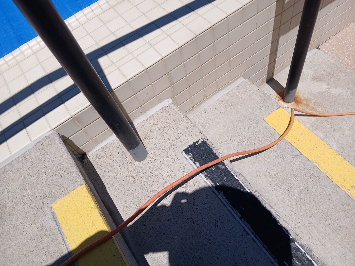 The project involved the restoration of several key structural elements around the rooftop pool area, including metal railings, staircases, and the adjacent maintenance access zone.