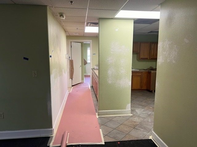 There were 22 foot ceilings, we painted the entire facility to match the new company brand colors.