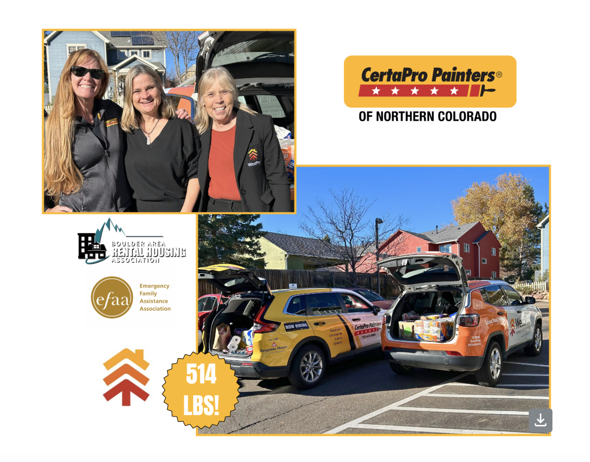 The holiday season is a time for giving, and we’re thrilled to share how our team has been making a difference! In partnership with BARHA- Boulder Area Rental Housing Association and Westpro Exteriors, we donated an incredible 514 pounds of food and supplies to EFAA-Emergency Family Assistance Association- Boulder, supporting families in need.