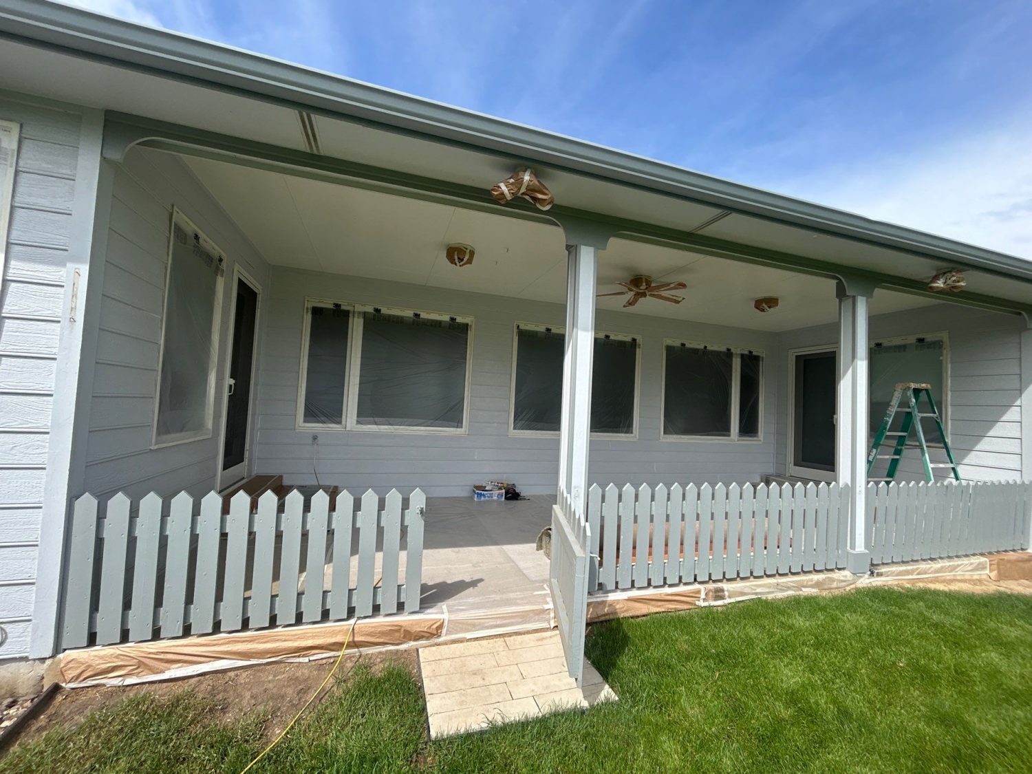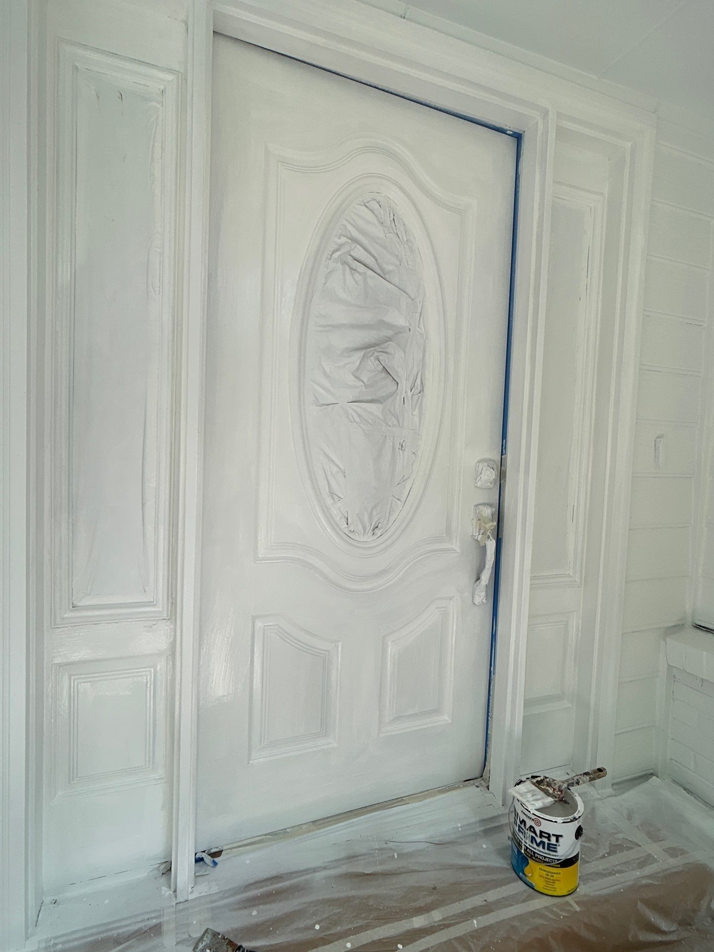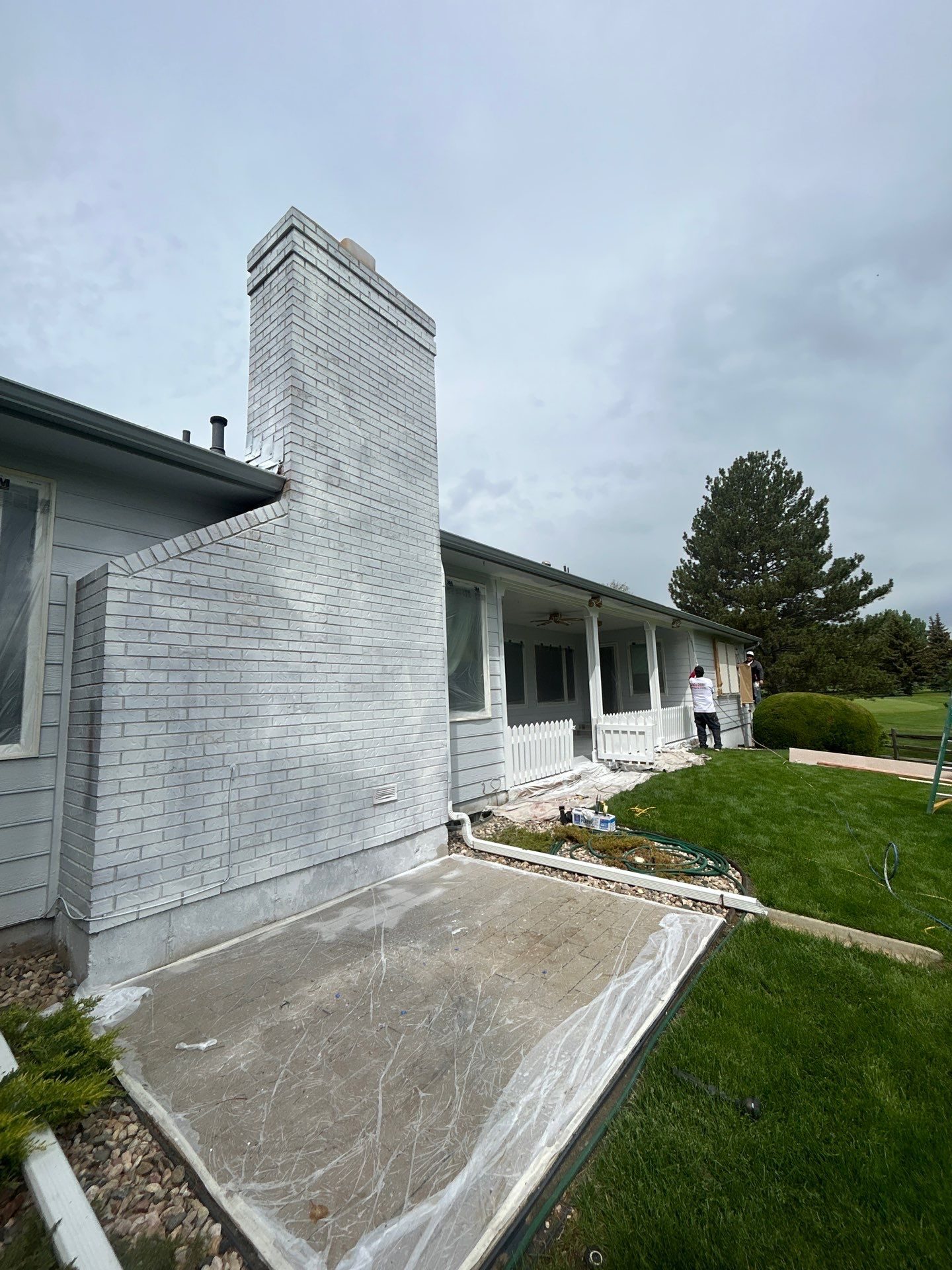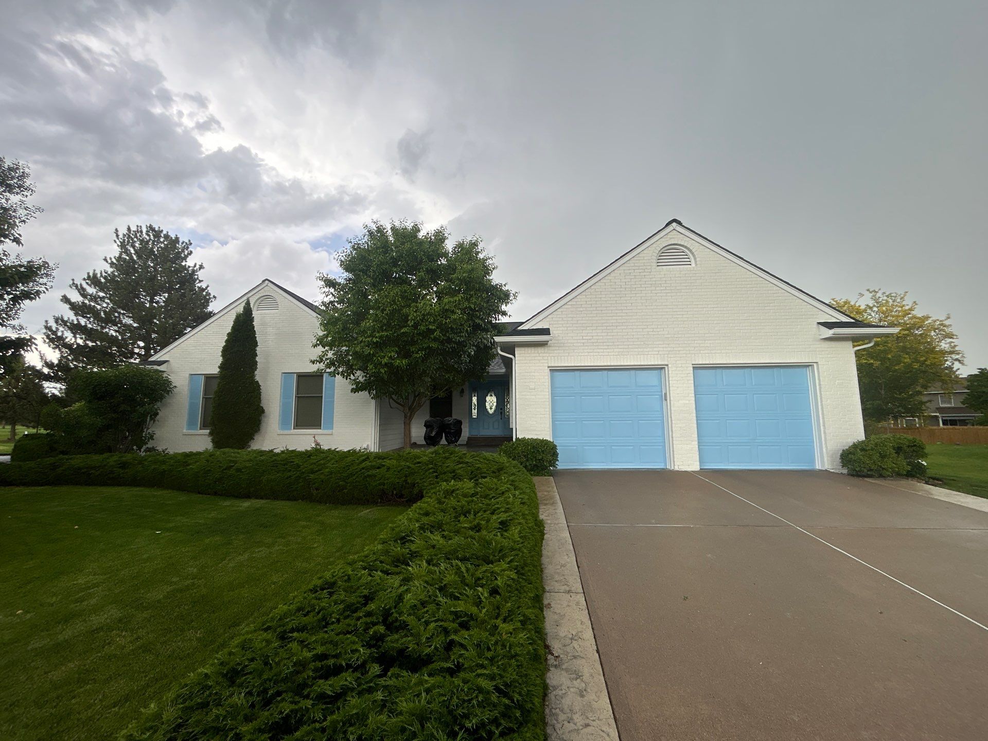 Our team provided a paint makeover for this local home with a bright, clean white paint for the brick exterior and bright blue for the doors and accents. See the before and after photos here.